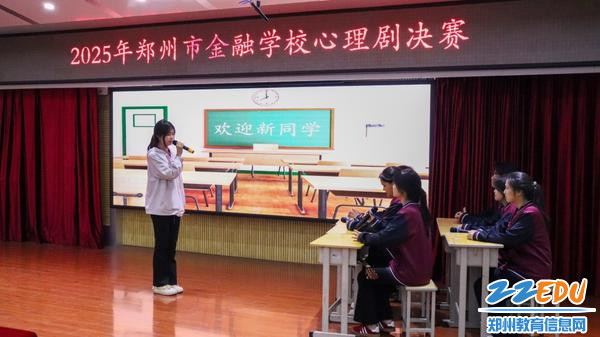 比赛现场,郑州市金融学校校长操瑞洪、郑州市教育科学规划与评估中心心理健康学科教研员郑亚楠等专家和老师担任评委,数十名家长代表应邀来到演出现场,全校师生也通过视频直播的方式观看当天的比赛。