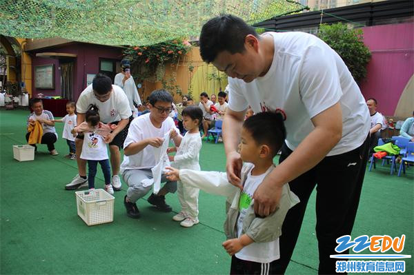 活动内容丰富,游戏环节妙趣横生。在“山洞探险队”中,爸爸们手脚着地搭建起曲折“山洞”,孩子们则鼓足勇气,爬行穿越并精准完成沙包投掷。这一过程中,勇敢无畏的精神在孩子心中扎根,父子、父女间的协作默契也悄然提升。“勇敢向前冲”将现场气氛推向高潮,爸爸与孩子紧密配合,依次完成跳圈与推车接力挑战。面对困难,孩子们在爸爸的鼓励下勇往直前,欢呼声、加油声此起彼伏。而“穿衣大作战”则考验着爸爸们的耐心与细心,赛场内,爸爸们手忙脚乱为宝宝找衣服、穿衣服,孩子们在一旁加油助威,欢声笑语不断,温馨场景令人动容。