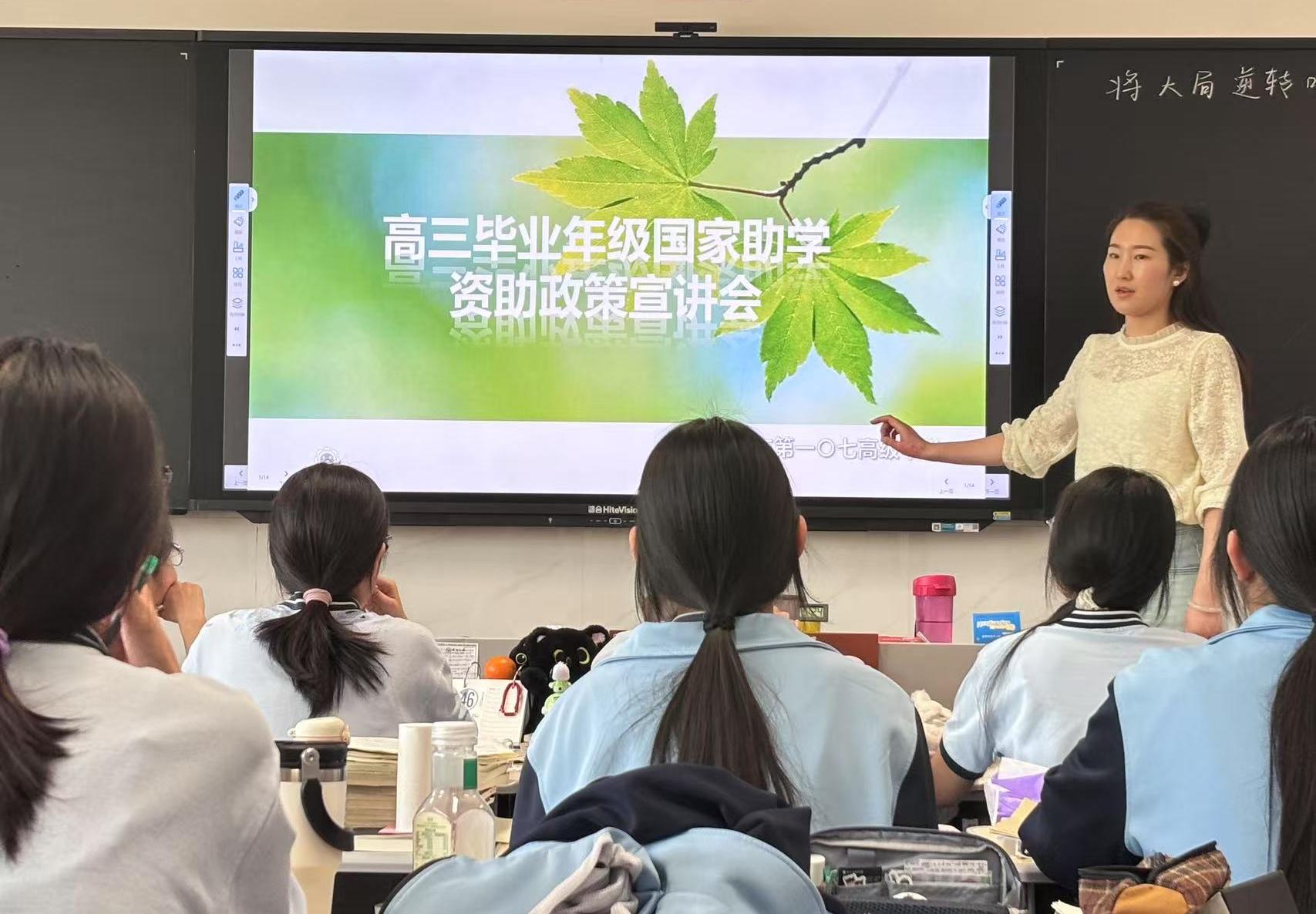 为深入贯彻落实国家资助政策,确保家庭经济困难学生顺利完成学业、开启美好未来,5月26日,郑州市第一〇七高级中学组织高三年级各班开展国家助学资助政策宣讲会,为即将踏上新征程的学子们送上暖心关怀与有力支持。