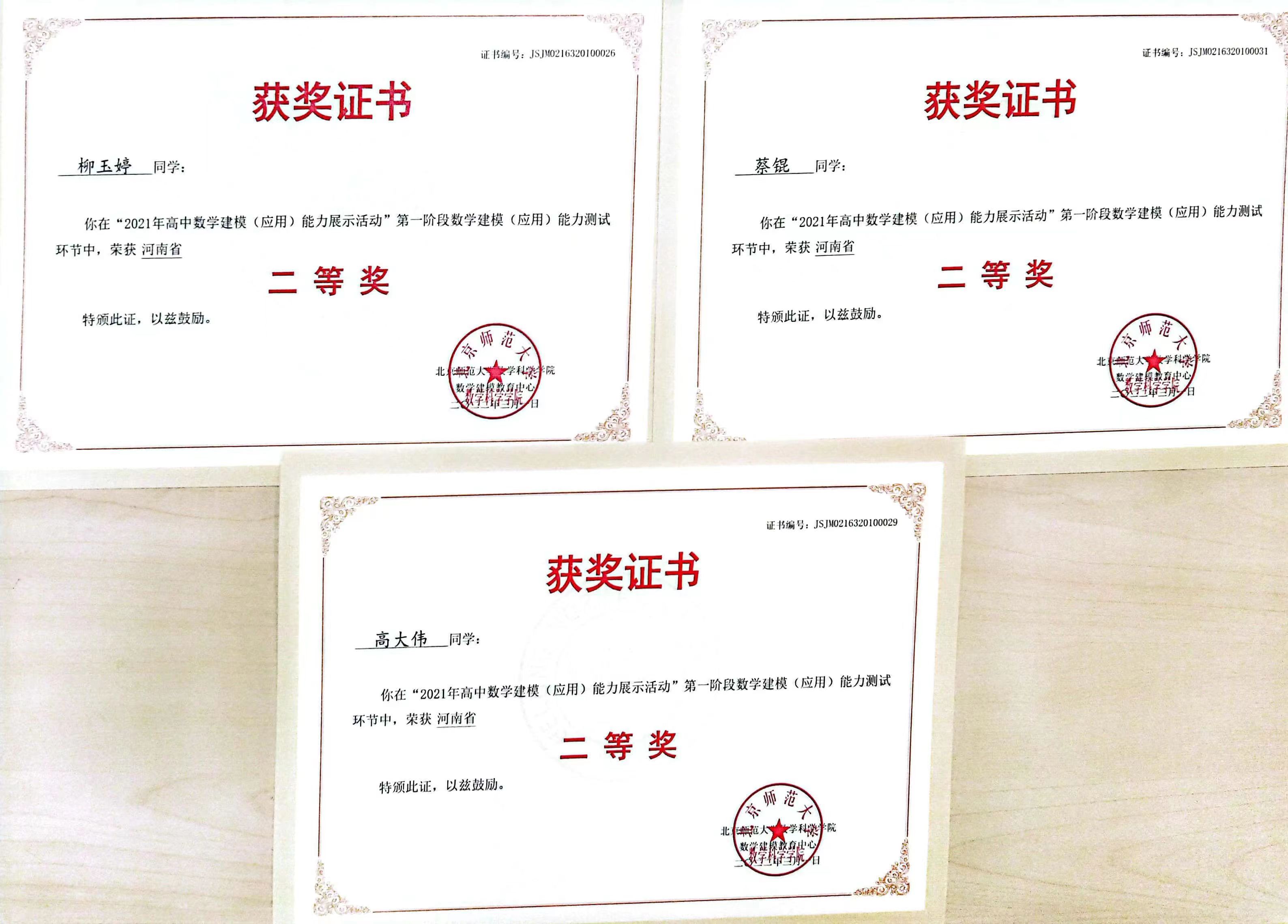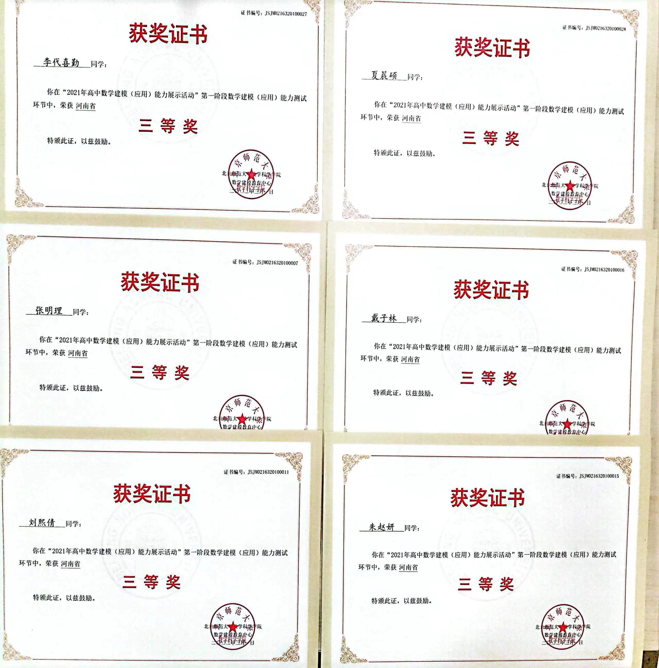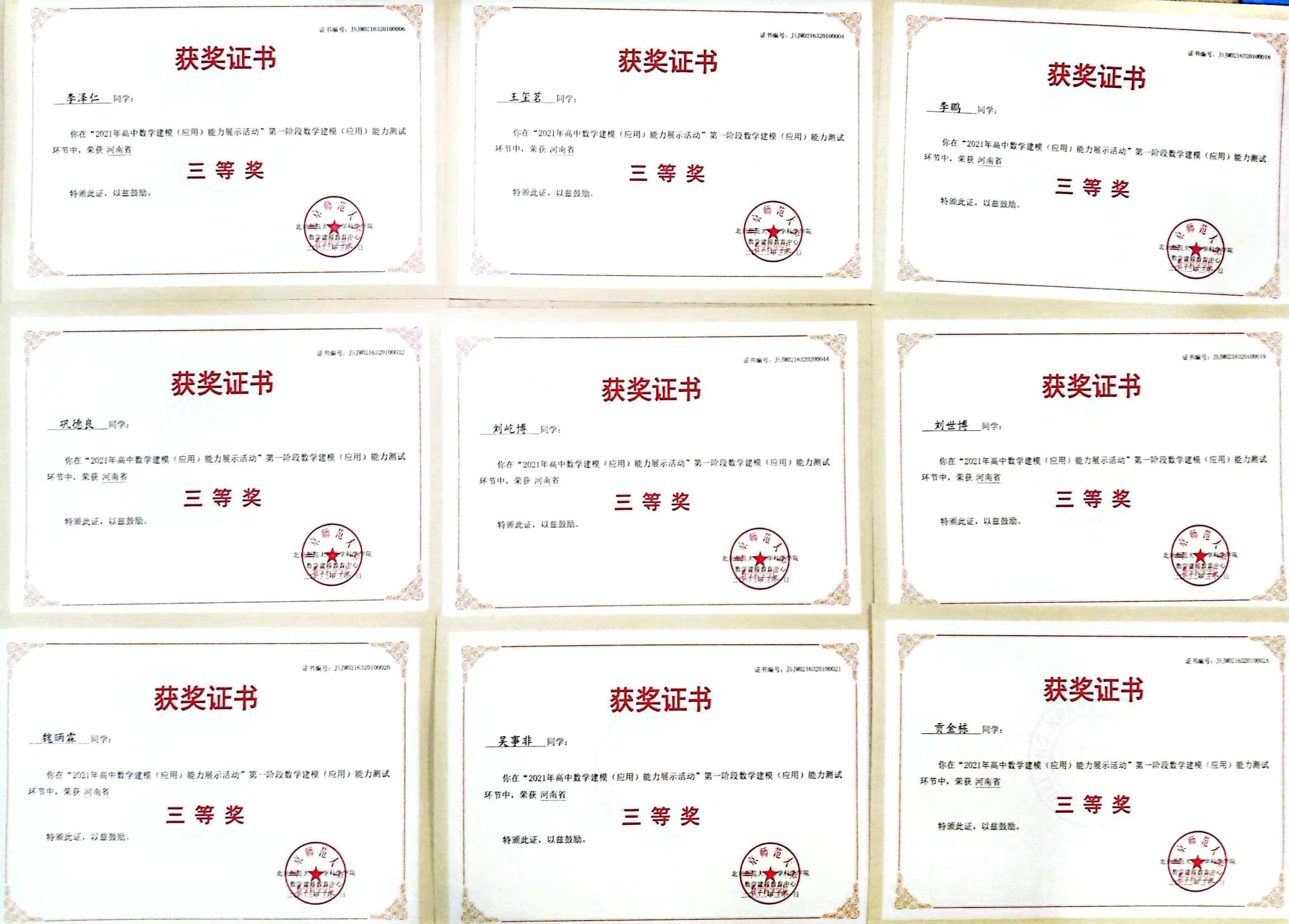随着2021年“全国高中数学建模”活动的第一轮笔试阶段的完美落幕,郑州市第九中学喜获三个河南省一等奖、三个河南省二等奖、十五个河南省三等奖。同时,张亚迪老师、程淑红老师、胡颖慧老师荣获优秀指导教师奖。