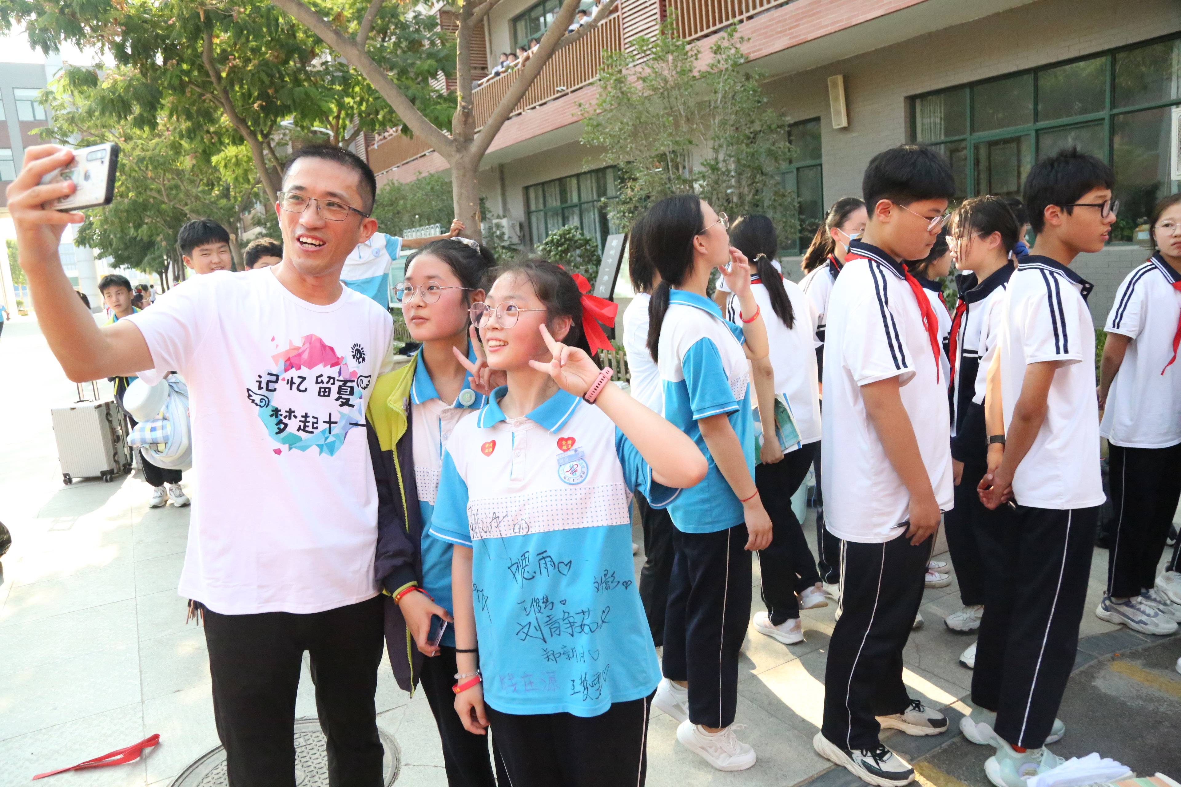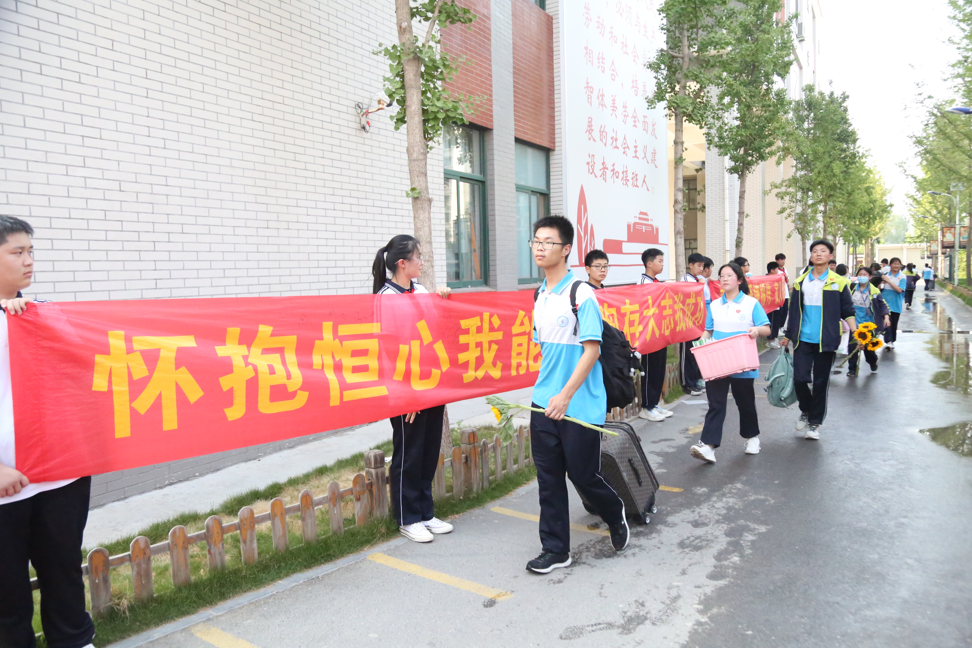 九年级学生在老师们和学弟学妹们的祝福下奔赴考场