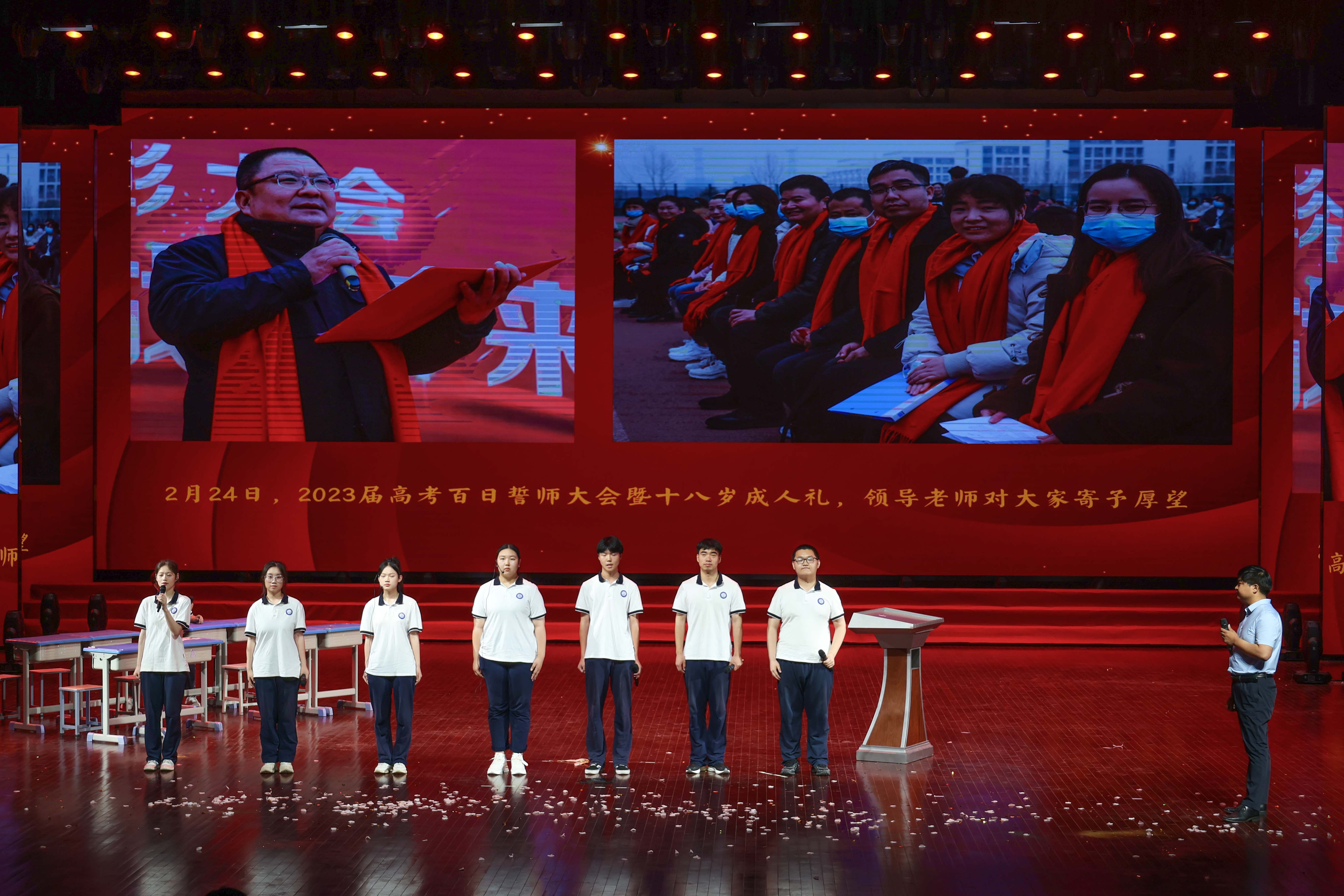 高考,是一段特殊的旅程;2023年的高考,也注定是一段特殊的回忆。朱开锋老师代表高三年级全体老师进行表态:“在高考前的这段时间里,老师们将和大家一直在一起。在高考的路上,你们不是孤军作战,还有老师们的暖心陪伴。”老师们还祝福所有考生,心中有梦,眼里有光,临场不乱,镇定前行,乘风破浪,直挂云帆!