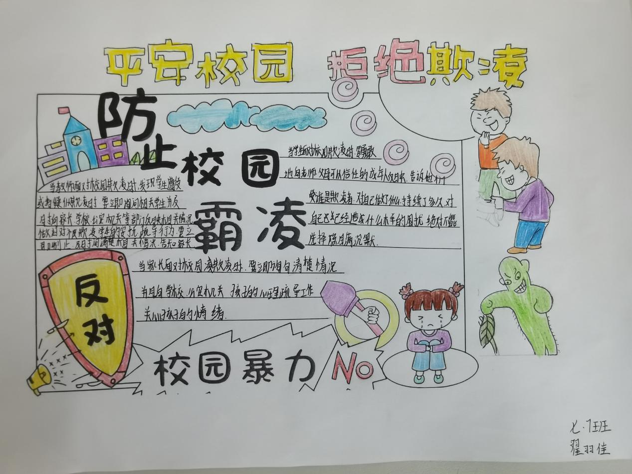 据悉,为深入开展防欺凌安全教育活动,各班还组织召开反欺凌主题班会,通过班主任讲授、学生自由讨论等方式,使学生真正认识到校园欺凌对受欺凌学生的身心伤害,自发自觉抵制校园欺凌行为。学校以班级为单位进行手抄报制作,学生自行查阅资料共同制作,在此过程中切实了解到防范校园欺凌的意义和重要性,并评选出优秀手抄报进行防欺凌主题手抄报进行展示。