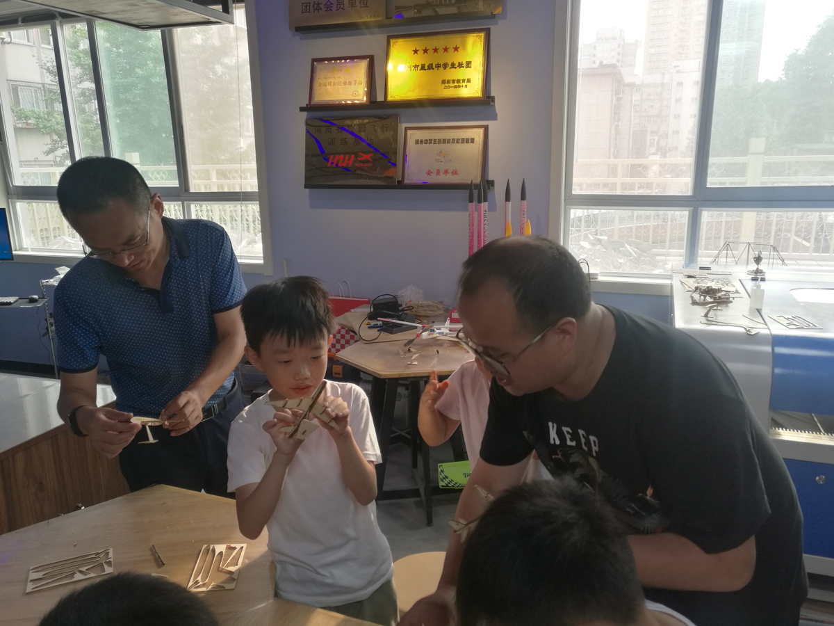 孟光明老师说,她的儿子——梓恩小朋友经过认真思考,选定了豆孝森老师负责的航模课程,在豆老师的带领下,制作飞机,实际操控飞机模型,玩得不亦乐乎!她表示:“豆老师很用心,为每位小朋友私人订制了零部件,看着都让人内心温暖。‘喻梓恩小朋友,儿童节快乐!’简单的几个字,饱含着豆老师对孩子的祝福,体现了八中对教师子弟们深厚的爱!每每这个时刻,内心充满感谢,感谢八中,感谢身边的同事,给予孩子们不一样的回忆,给予孩子们最美的时光。”