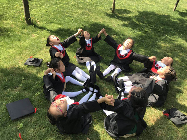 孩子们在老师的组织下身着统一的园服,在观星台开心快乐地进行了毕业留影。一声声响亮的“茄子”声音,一张张灿烂的笑脸被定格。孩子们三五成群的坐在一起,摆出各种造型,边玩边和老师一起照相。草地上处处留下孩子们快乐的身影,也留下孩子们人生中一张张毕业倩影。