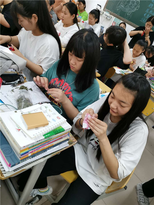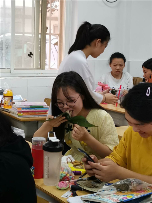 平日里充满了书香的教室,今天还充满了艾香和粽香;平日里同学们拿笔的双手,今日拿起了针线与粽叶。王冠瑛兴奋地说:“这次活动特别有意义,以前我的香囊都是我家人帮我做的,而这次都是我自己做的,特别有成就感,我要多做几个送给爸爸妈妈!”活动结束后,同学们纷纷感慨,在郑州艺术幼儿师范学校的日子真是多姿多彩,不仅学习到了技能,还学习到了浓浓的“人情味儿”和屈原热忱的爱国情怀,激发了他们对祖国传统节日的热爱,也深刻理解了爱国的含义。