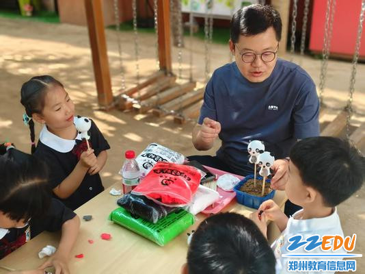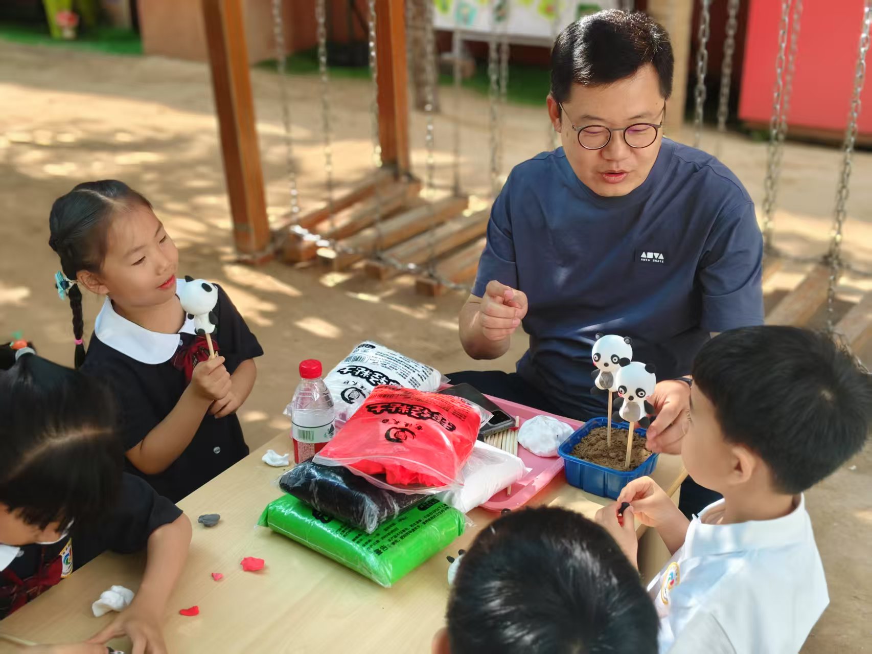 活动当天,郑州艺术幼儿师范学校党委委员、实训处主任朱冬梅带领非遗专业师生,带着精心准备的材料和工具来到郑州市实验幼儿园。在面塑体验区,河南省省级非物质文化遗产面塑项目代表性传承人、面塑教师崔勇锐,手持彩色面团,向孩子们示范捏制憨态可掬的小熊猫。将面团揉圆做身子、搓条塑四肢、点缀黑豆般的眼睛……孩子们目不转睛地学习,小手跟着上下翻飞,不一会儿,形态各异的“熊猫家族”便诞生了,孩子们稚嫩的声音中满是成就感。