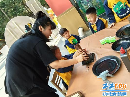 河南省省级非物质文化遗产面塑项目代表性传承人崔勇锐指导孩子们捏塑