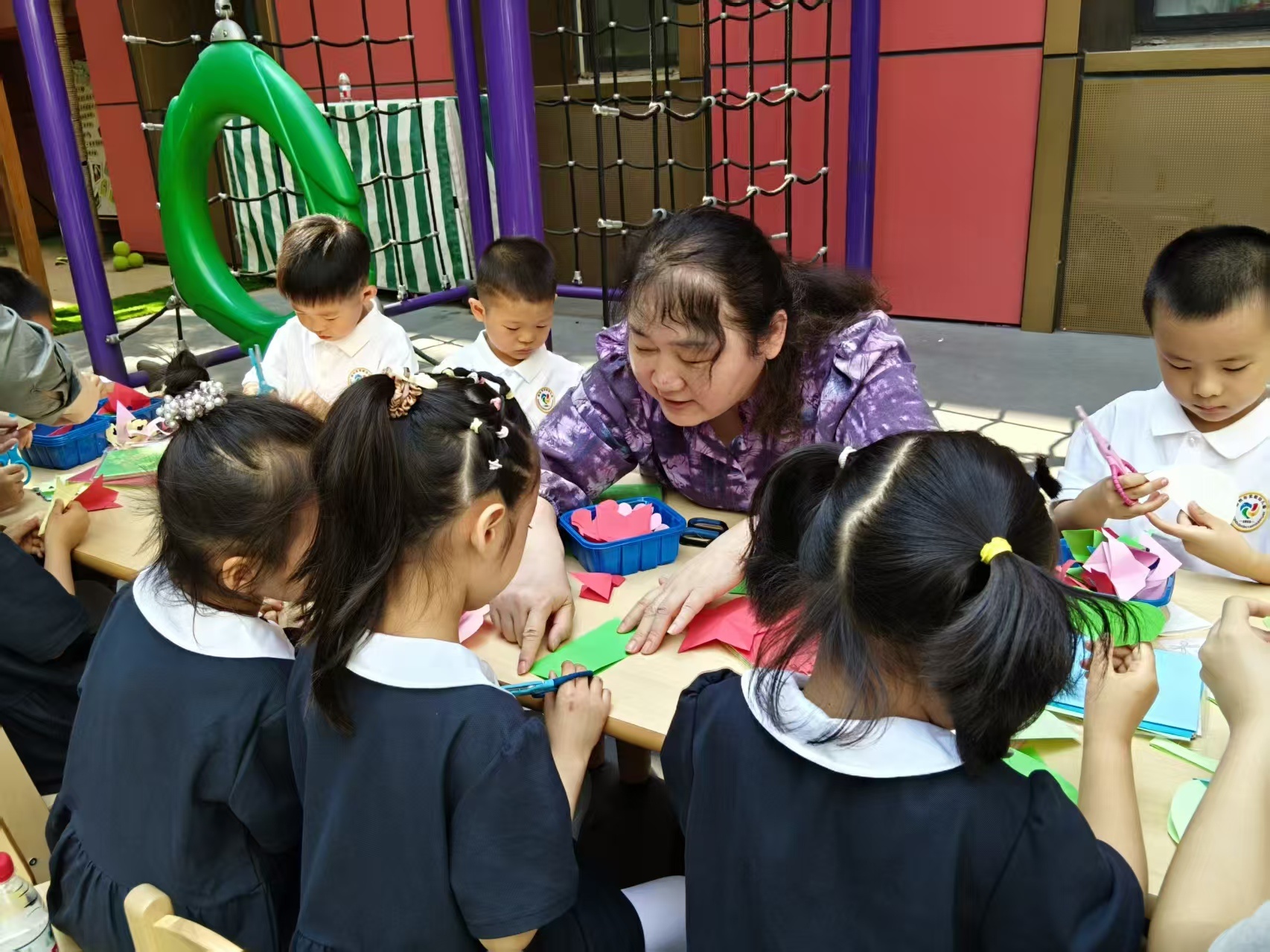 在剪纸体验区,河南省中等职业学校教学名师、剪纸教师冯春霞,带来了一张张鲜艳的彩纸。她耐心地教孩子们折纸、下剪,从简单的窗花轮廓到复杂的花纹细节。孩子们专注地跟随冯老师的步骤,剪刀在纸上轻盈舞动。不一会儿,一幅幅精美的剪纸作品诞生,有活泼的小兔子、盛开的花朵,让现场充满了童真与欢乐。
