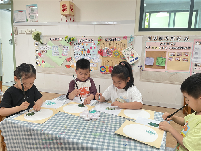 中班孩子们开展了“粽子DIY”手工活动,一个个化身“小小工匠”,认真折叠、粘贴,为粽子涂上漂亮的外衣,随着一个个新鲜粽子的出炉,他们举着自己的作品欢呼雀跃,赞叹声不断。老师为孩子准备了五彩绳,稚嫩的小手左一下右一下,编织出满满的节日祝福,在欢乐中了解端午习俗,体验了中华优秀传统文化的深厚底蕴。此外,老师们还带领幼儿学习了简单的端午童谣,朗朗上口的旋律悄然浸润童心。