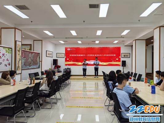 下午3时,欢迎仪式在郑州八中图书馆举行。郑州八中副校长雷炀用一句“有朋自远方来,不亦乐乎”表达了对美国师生的热烈欢迎。她提到:“文化交流是心灵的对话,希望今天的活动能成为两校友谊的新起点。”随后,郑州八中为每位美国交换生安排了一名“文化交流搭档”,这些郑州八中学子们自信大方,全程用英语引导伙伴参与活动,成为连接中美文化的“小使者”。