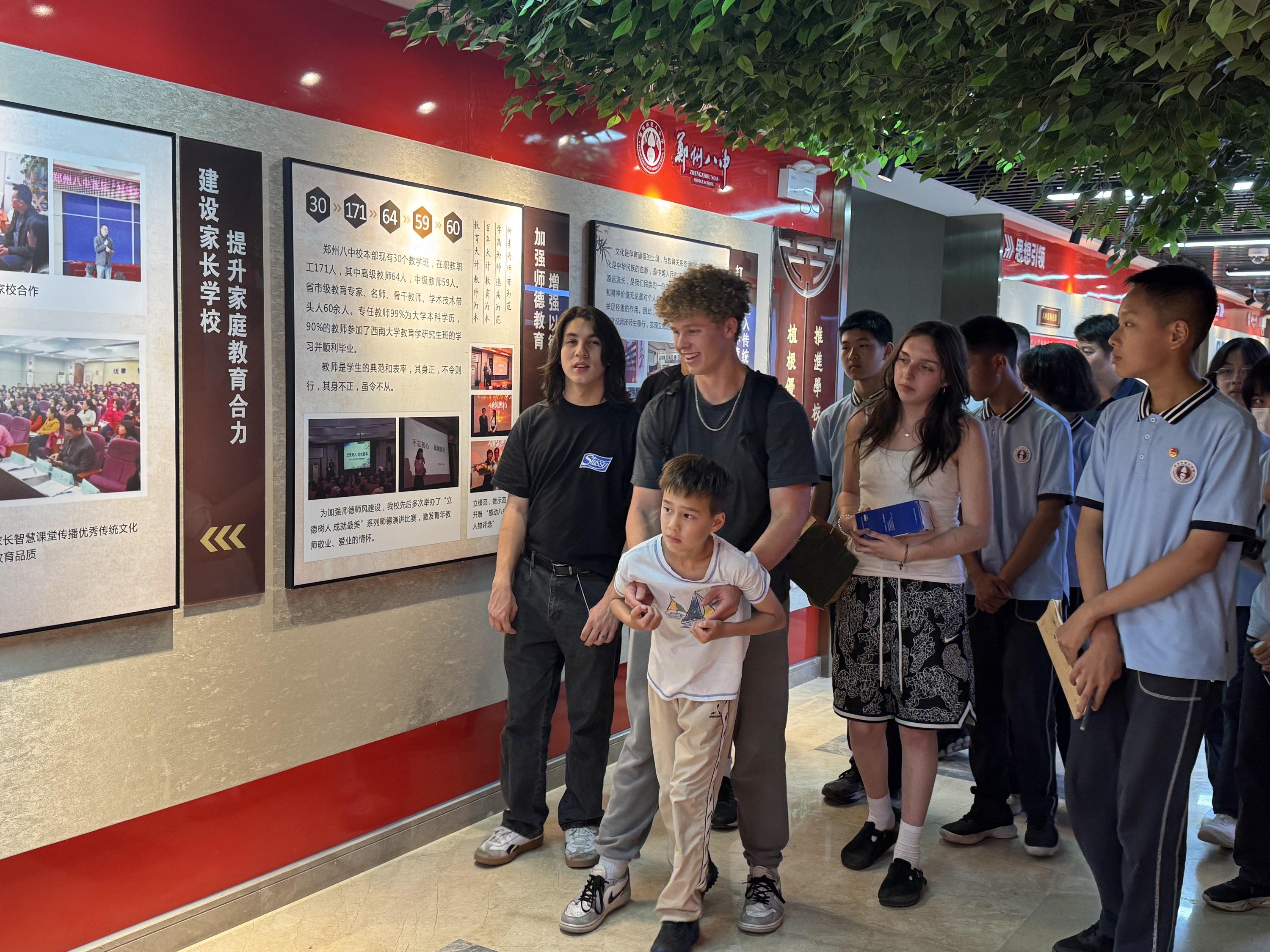 6月5日下午,郑州八中校园内洋溢着欢声笑语,来自美国圣玛丽高中的国际交换生代表团到访,与郑州八中学子展开了一场别开生面的文化交流活动。此次活动以“友谊、体验、共享”为主题,通过丰富多彩的文化体验项目,让美国学生近距离感受中华优秀传统文化的魅力,同时也展现了郑州八中学子的国际视野与青春风采。