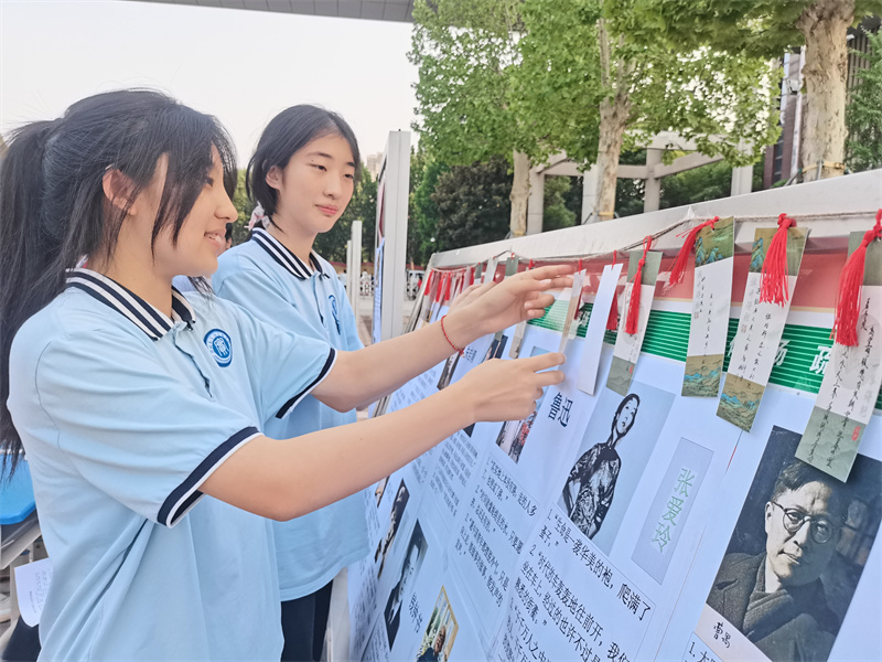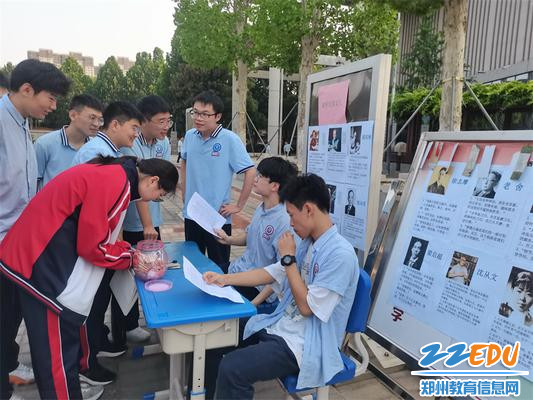 6月11日下午大课间,郑州市实验高级中学南广场书香氤氲,诗意盎然,一场以“聆听民国文人”为主题的校园文化活动在此举行。活动由学校晨轩文学社主办,吸引了众多学子积极参与,旨在引导同学们走近民国文人的精神世界,感受其思想魅力与文学风采,深刻体悟“人能宏道,非道宏人”的文化传承真谛。
