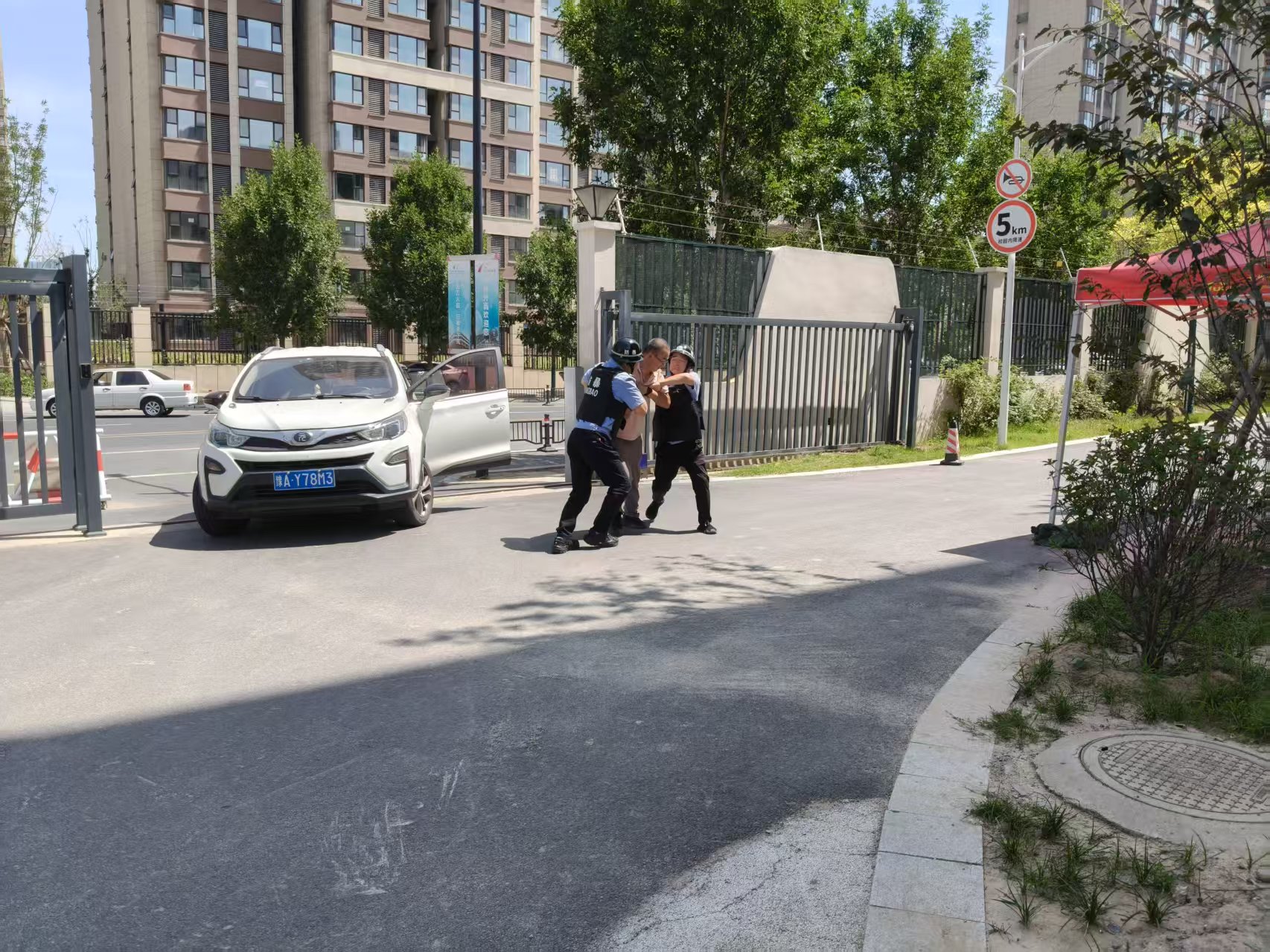 本次演练模拟了“不法分子驾驶车辆试图强行闯入校园”的突发场景。演练开始,中控室值班人员及校门口安保人员发现一辆形迹可疑车辆加速驶向校门,意图冲卡。