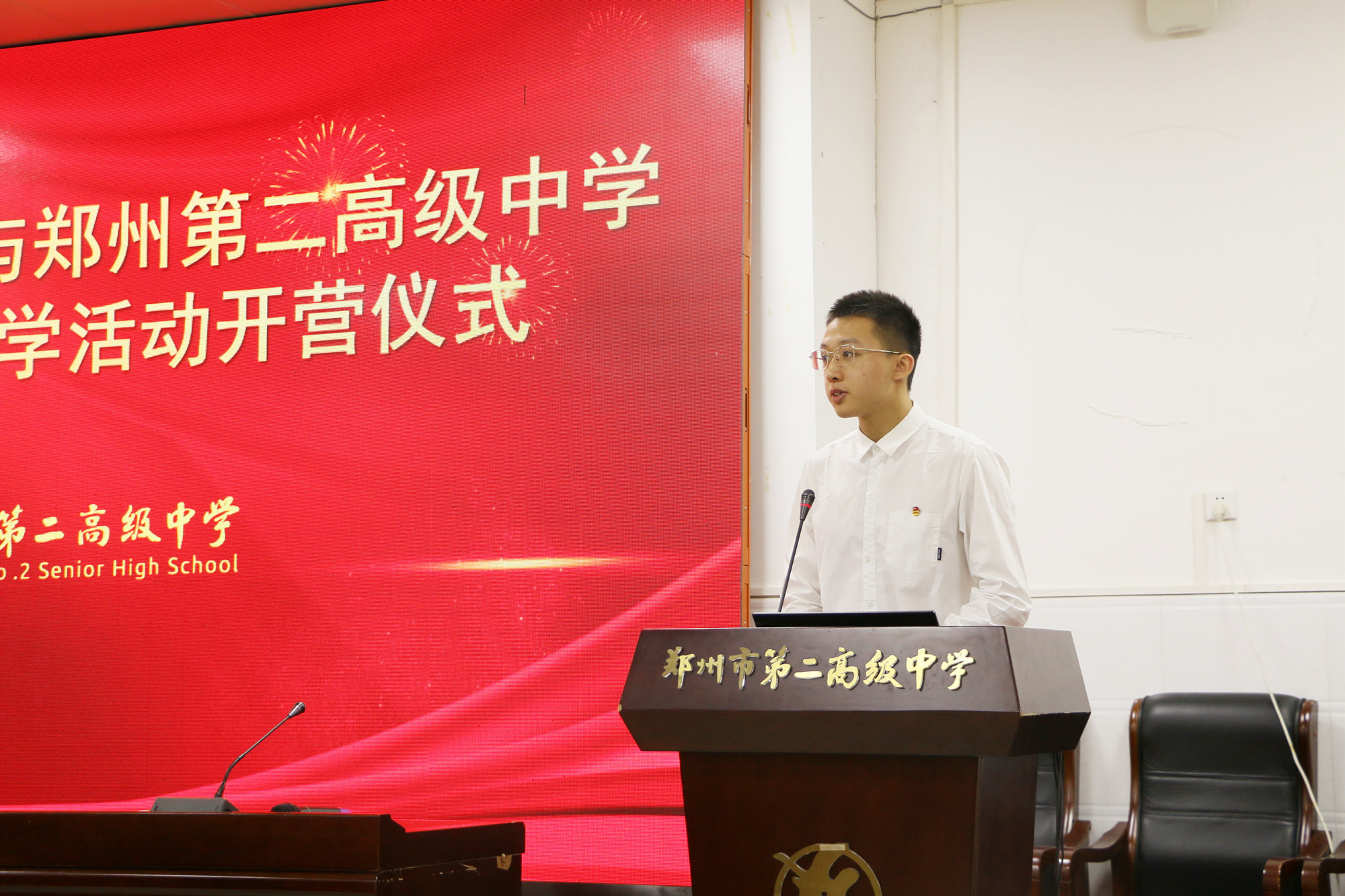 两校的学生代表还在开营仪式上发言。华东师范大学数学科学学院副教授刘攀向师生简单介绍在研学活动期间要和同学们分享的数学讲座内容,对同学们接下来的表现表达了期待。上海市市西中学校长助理、教育管理处主任郑岚对郑州市第二高级中学的热情接待表示感谢,祝愿此次研学活动顺利举行。