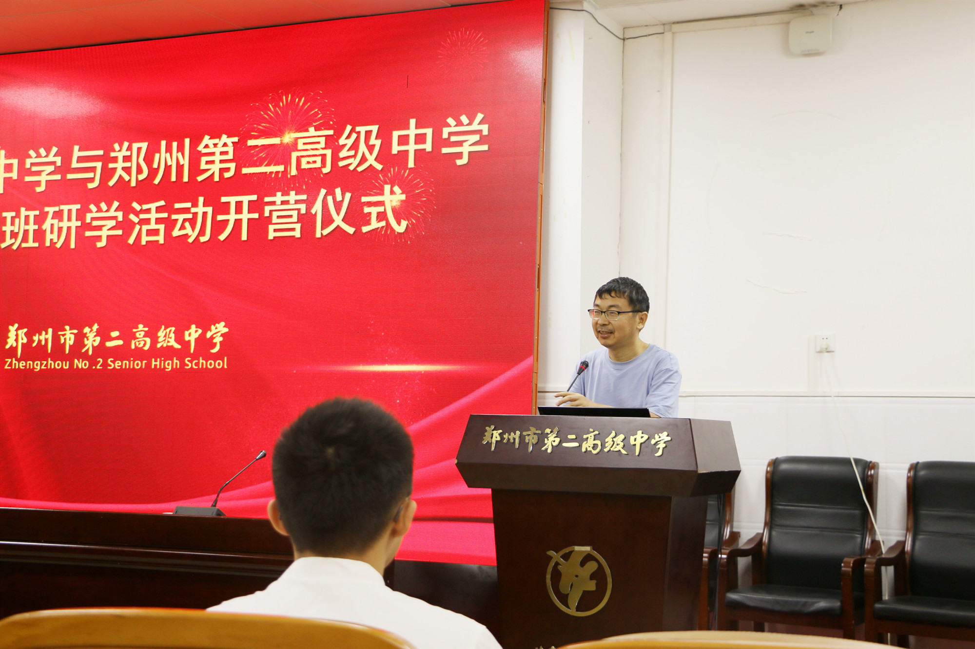 7月1日上午,上海市市西中学与郑州市第二高级中学数学资优班研学活动在郑州市第二高级中学开营。来自华东师范大学的老师,上海市市西中学、郑州市第二高级中学参加数学资优班研学活动的师生参加开营仪式。