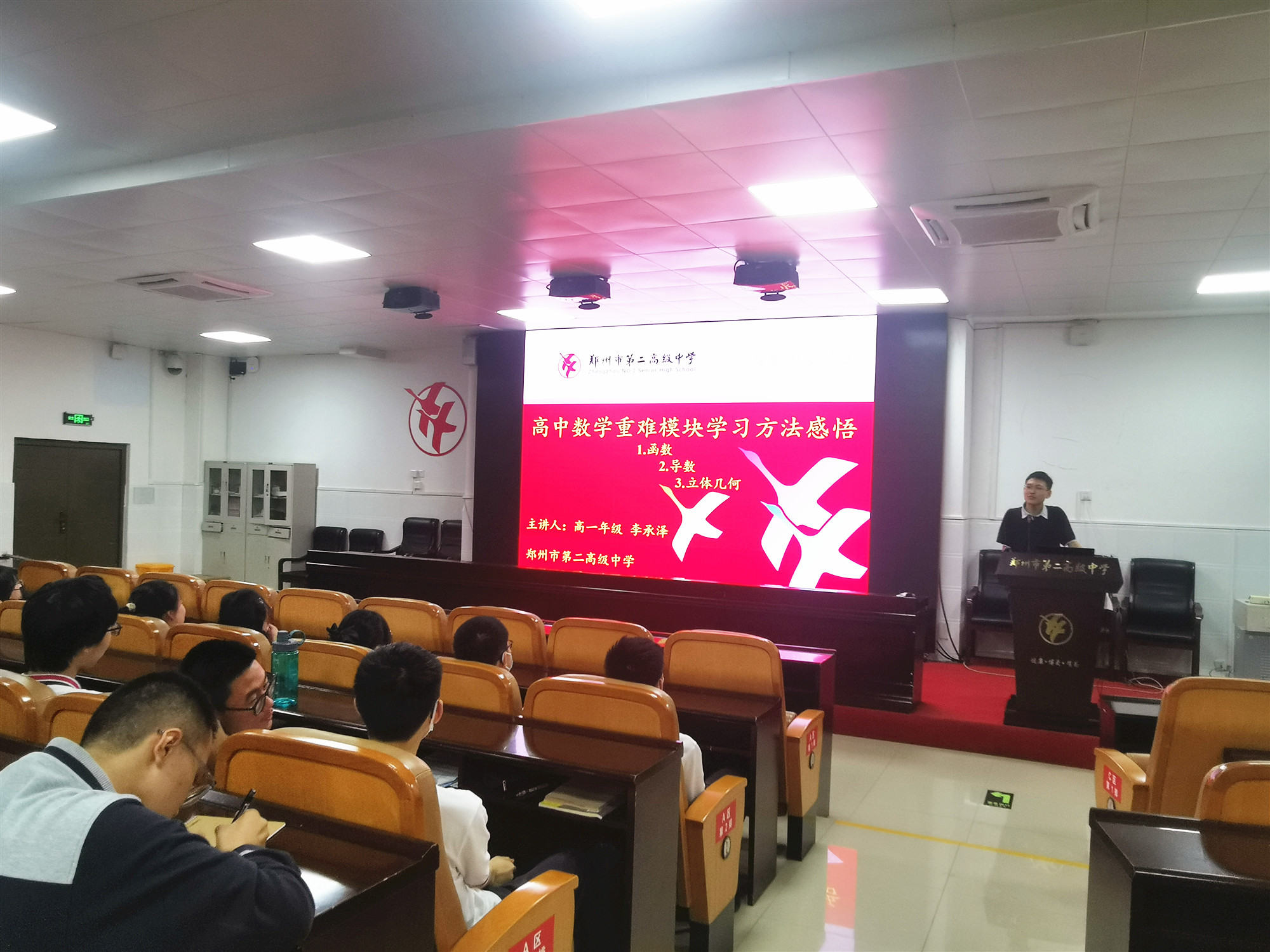 下午,上海市市西中学、郑州市第二高级中学的几位同学分别分享了自己高中数学学习、论文撰写与数学竞赛等方面的经历。同学们在分享中既讲述了自己在数学学习方面的一些成功经验、学好数学的心态调整建议,也真诚地分享了学习过程中的一些遗憾,用经验给同学们以启发,用教训给同学们以警示。