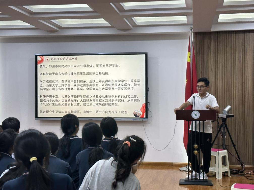 为充分发挥优秀毕业生成长导向作用,点燃梦想、激发热情、传递力量,2023年7月4日,郑州市回民高级中学邀请优秀毕业生代表开展“情系回高,榜样领航”的学法指导主题活动。