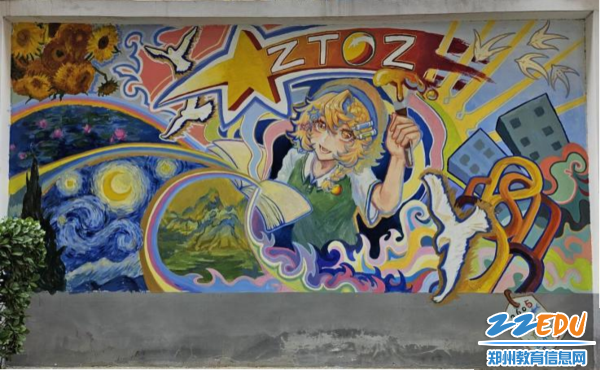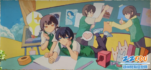 同学们从主题构思、画面设计到最终上色,全程自主参与。一位参与创作的学生感慨道:“以前在画纸上练习,这次是在校园的墙上留下我们的集体印记,特别有成就感!我们班设计的《梦想启程》就是想表达郑州市第一〇六高级中学是我们艺术梦想启程的地方。”