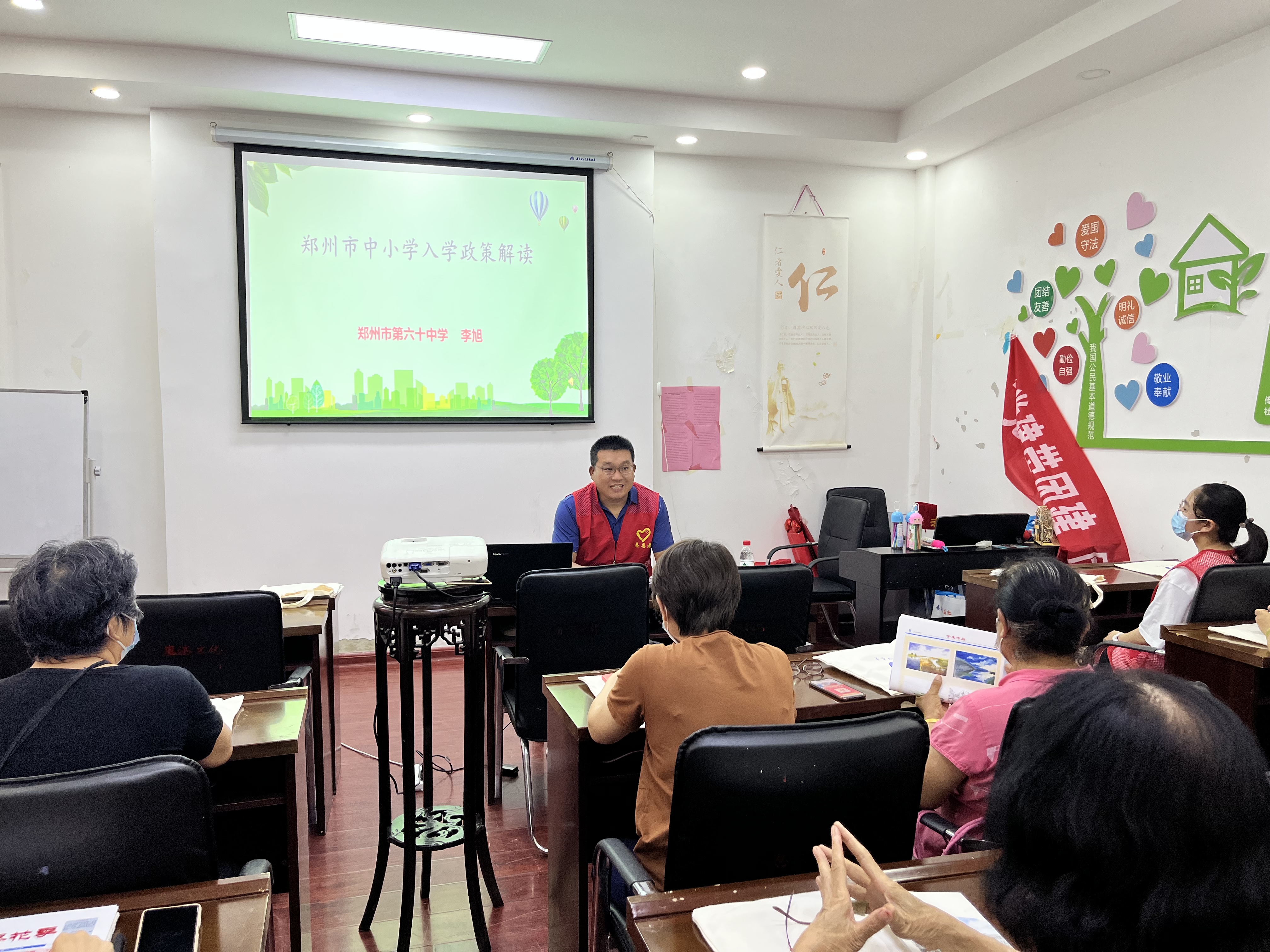 为全面落实立德树人根本任务,提升家长学校指导服务水平,传播科学的家庭教育理念和方法,进一步加强和改进未成年人思想道德建设,发挥家长学校教育优势。8月10日下午,郑州六十中开展家庭教育进社区活动。