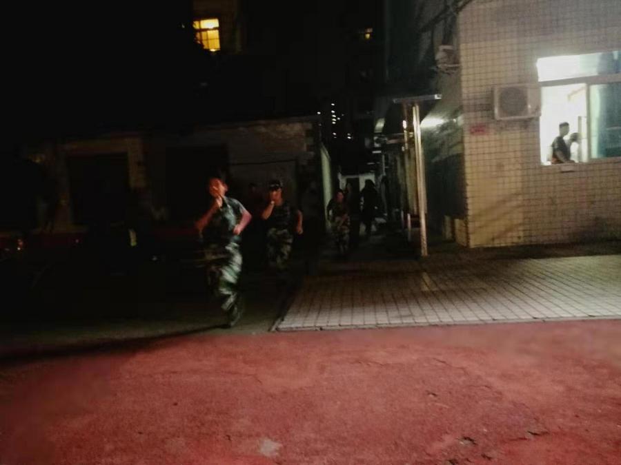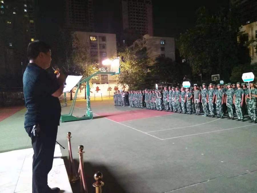 活动的第一个阶段是消防演练,晚上7:30,随着该校学生处主任兼演练总指挥周子豪的一声令下,报警员发出火灾撤离信号,宿舍各个楼层的学生闻讯,立刻将自己的毛巾打湿,按事先的要求,掩住自己的口鼻,俯下身子,迅速撤离宿舍到操场空地集合。由于每个楼层都有老师和教官疏导,学生们虽然有点紧张,但没有一点慌乱,按预定方案选择最近的楼梯口安全撤离,短短的2分20秒,学生宿舍就空无一人,消防演练圆满收官。