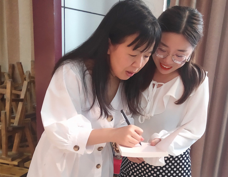 会议间隙,与南京师范大学教授殷飞、儿童文学作家童喜喜交流并合影留念。