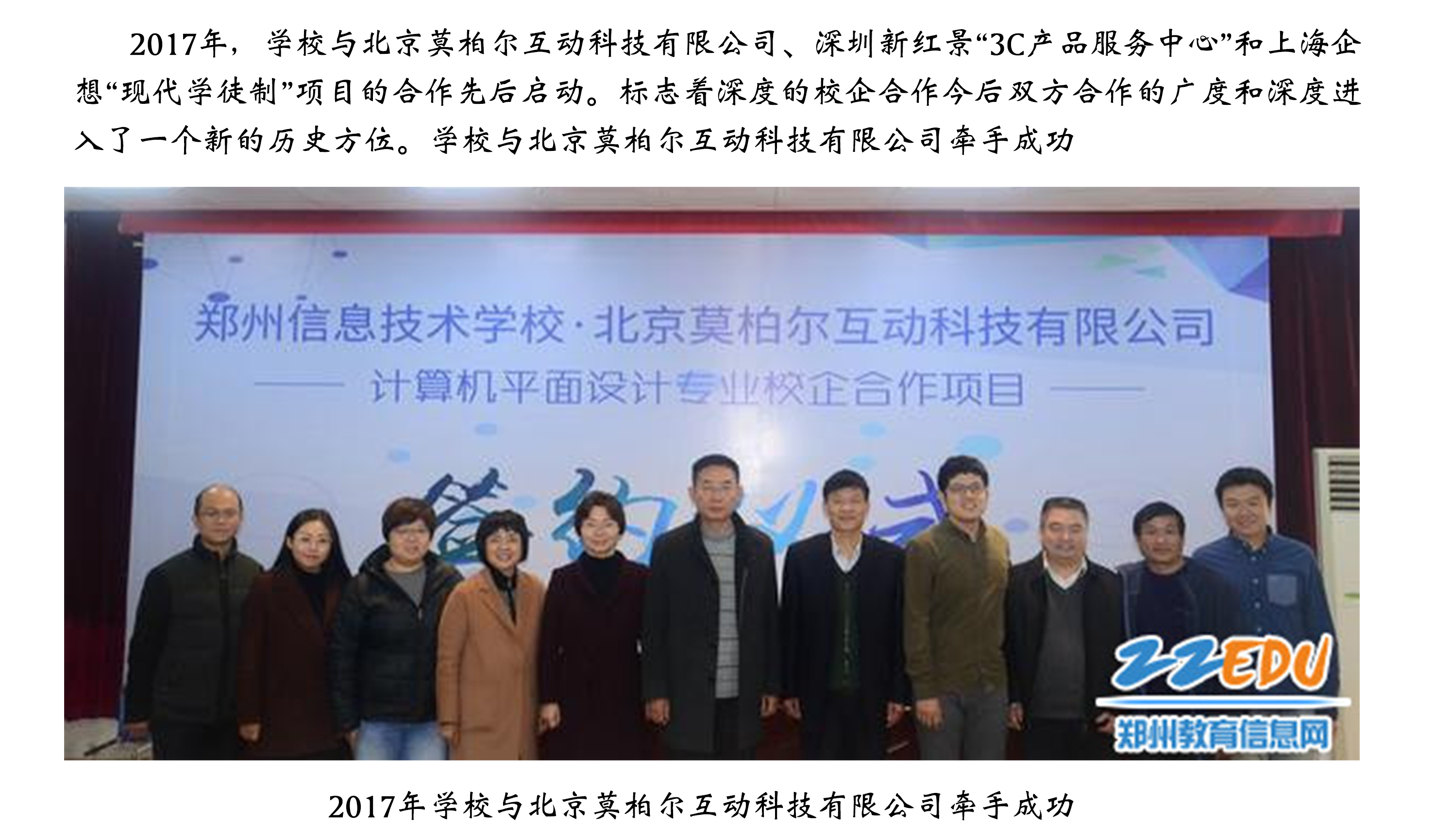 学校在移动应用技术与服务专业方面不断探索,并与北京莫泊尔互动科技有限公司从师资培养到课程开发进行深度校企合作。
