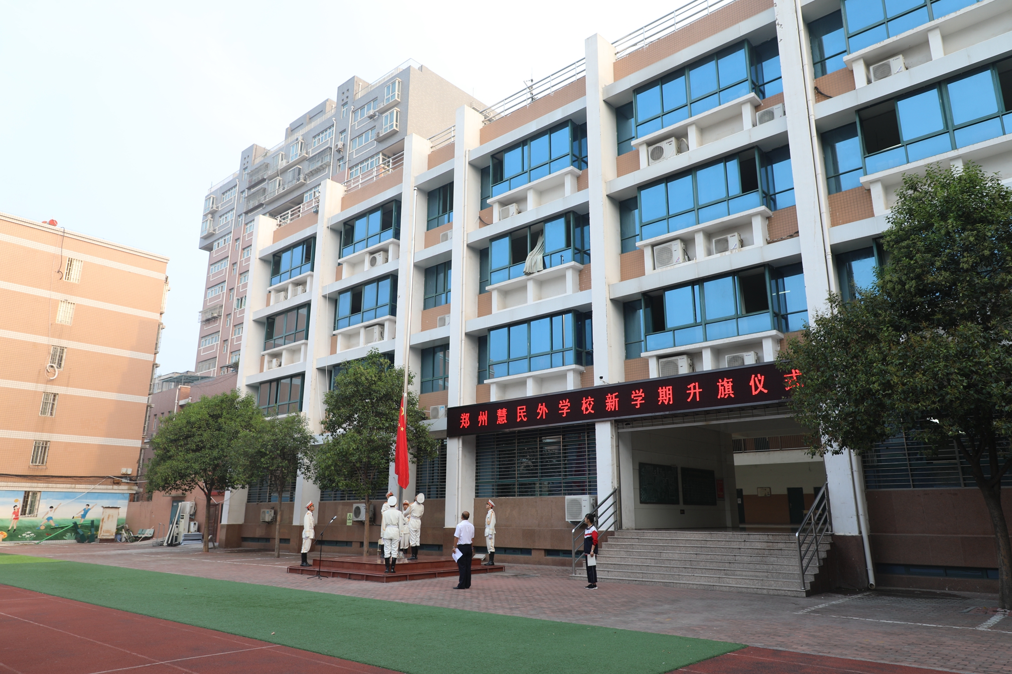 天高云淡,秋日杲杲。迎接新学期,开启新征程,8月26日清晨,郑州慧民外语学校举行了新学期第一次升旗仪式。学校全体师生参加升旗仪式。