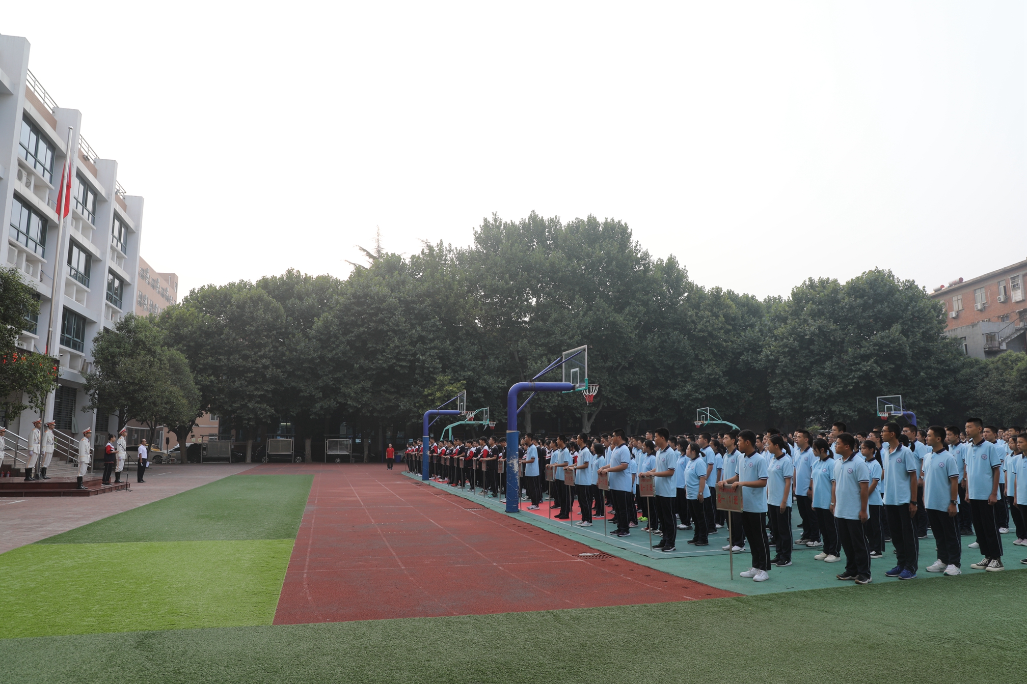 全体师生参加升旗仪式