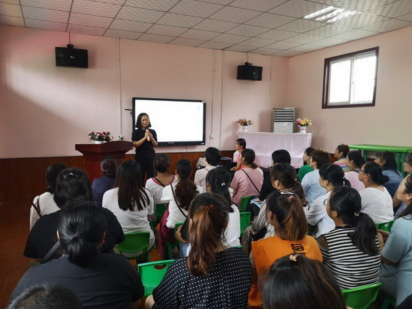 为了让新生家长进一步了解幼儿园,知晓新生入园后的相关宜忌,树立正确的幼儿教育观,促进孩子尽快适应集体生活,8月27日下午,惠济区江山路街道办事处中心幼儿园邀约全体新生家长到园召开家长会,家长会总会场设在音体室,由保健办主任潘彦静主持。
