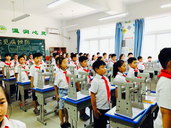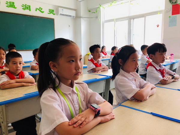 在展演期间,队员们排着整齐的队伍,秩序井然的进入班级,进班后迅速将书包放进桌兜里,将自己的凳子轻轻地放下,迅速坐端,整个过程快、静、齐,井然有序。随着老师“上课”一声令下,队员们迅速起立,动作整齐划一,师生相互行礼问好,语调轻快,声音响亮。无论是书本的摆放收拿,还是听讲读写姿势,学生都能做到规范有序。瞧,小身板坐得真端正;听,“玉不琢,不成器,老师,您好!” 只见,学生们的目光炯炯有神,声音整齐洪亮,干净利落,不管是口令员还是孩子们的口令,都气势十足,孩子们把自己对老师们的爱也在那一刻全部释放,场面令人感动。
