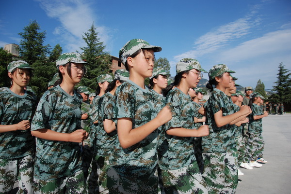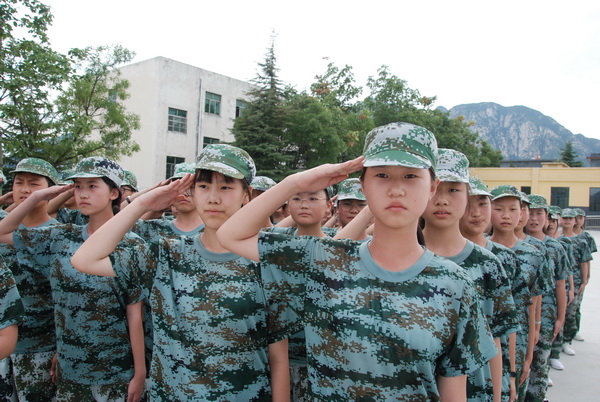 一大早,大家就乘大巴车出发了,八点到达训练场。面南的山脚下,空旷的广场上,烈日当空,骄阳似火。这丝毫没有影响同学们训练的劲头。16个班级排成16个方块队迅速布满训练场,大家依然精神抖擞地开始了各项训练活动。教官严格耐心地教,学生刻苦认真地学。同学们精神饱满,步伐矫健、动作准确、口号震天,倍显军人气质和青春风采。他们克服了各种困难,经受了各种考验,用自己坚定的眼神、笔直的胸膛证明了自己的顽强。操场上随处可听到教官高喊的口令和同学们洪亮的声音,随处可看到着装整齐、动作一致的学生身影,随处可见到汗水湿透的衣背。站军姿、立正、稍息、看齐、转向、敬礼、齐步走等预定项目训练到位,成效明显好于往年。