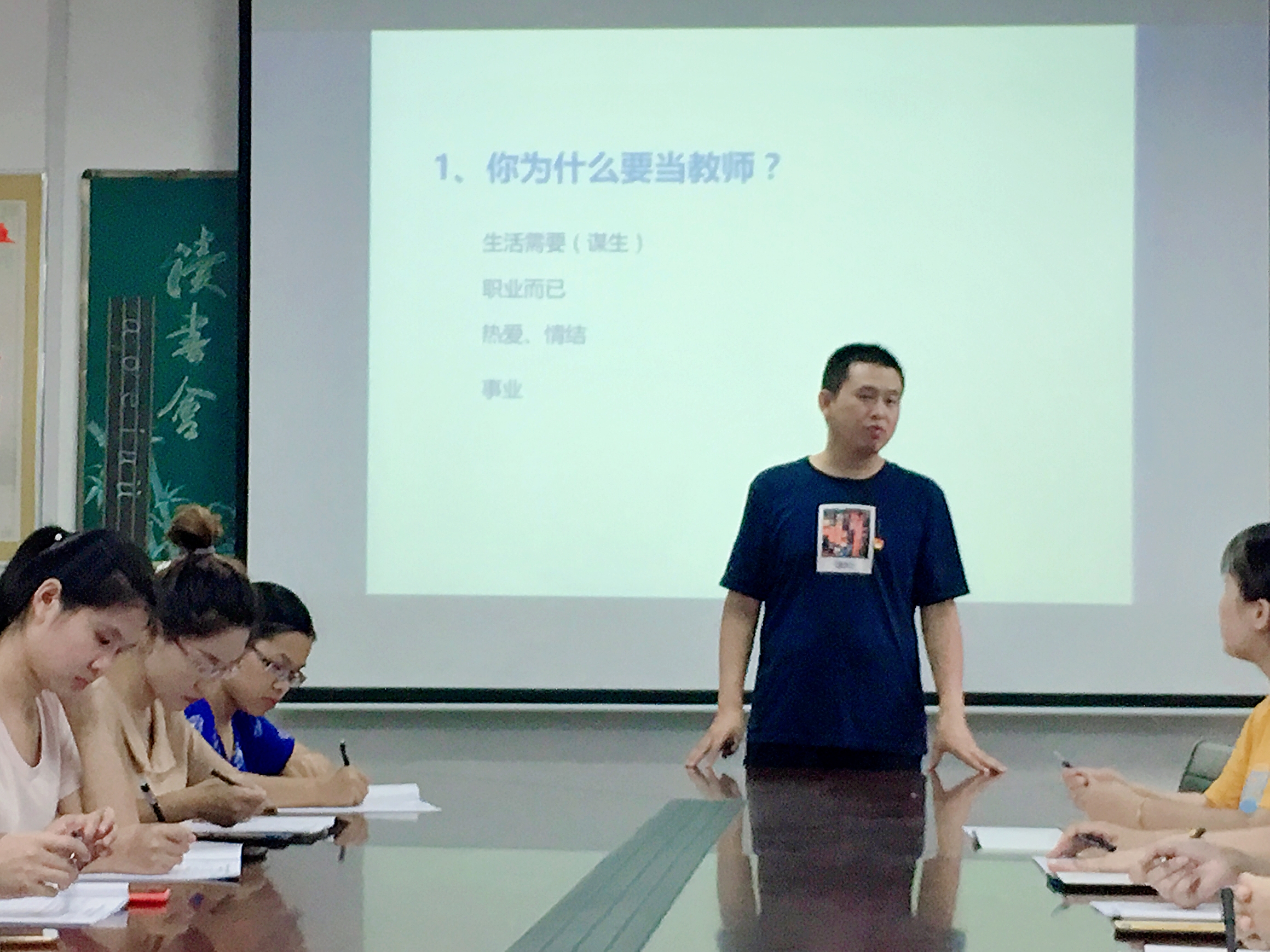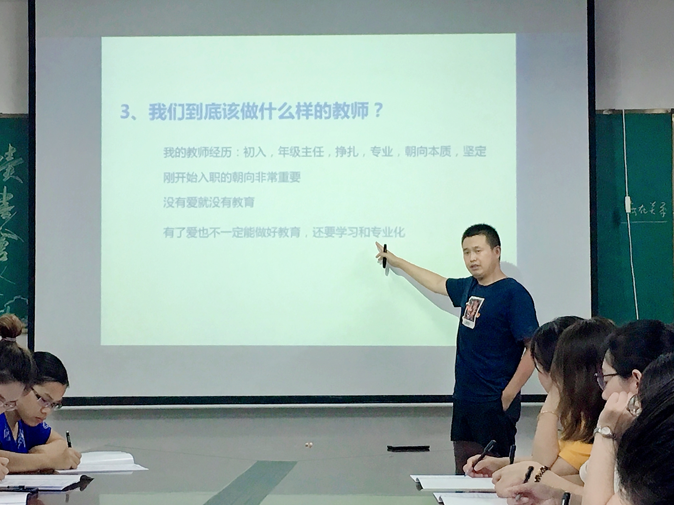 首先,校长李末对加入“全人之美”大家庭的新教师表示了热烈欢迎,接着开始围绕以“我们要做什么样的老师”为主题,从我们为什么要当老师、我们要做怎样的教师以及教育教学专业知识等内容进行培训讲座,引发大家的思索和探讨。每位老师听得回味无穷,收获颇多。