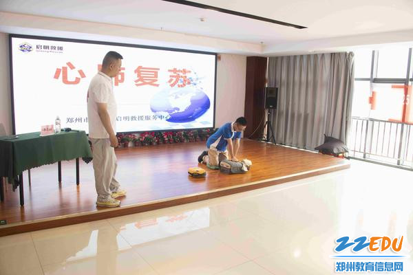 郑州市红十字启明救援服务中心李志鹏老师演示心肺复苏技巧