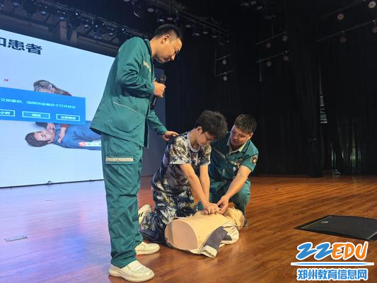 郑州市第六人民医院急救科医生王永强和助教耐心指导学生进行心肺复苏模拟演练