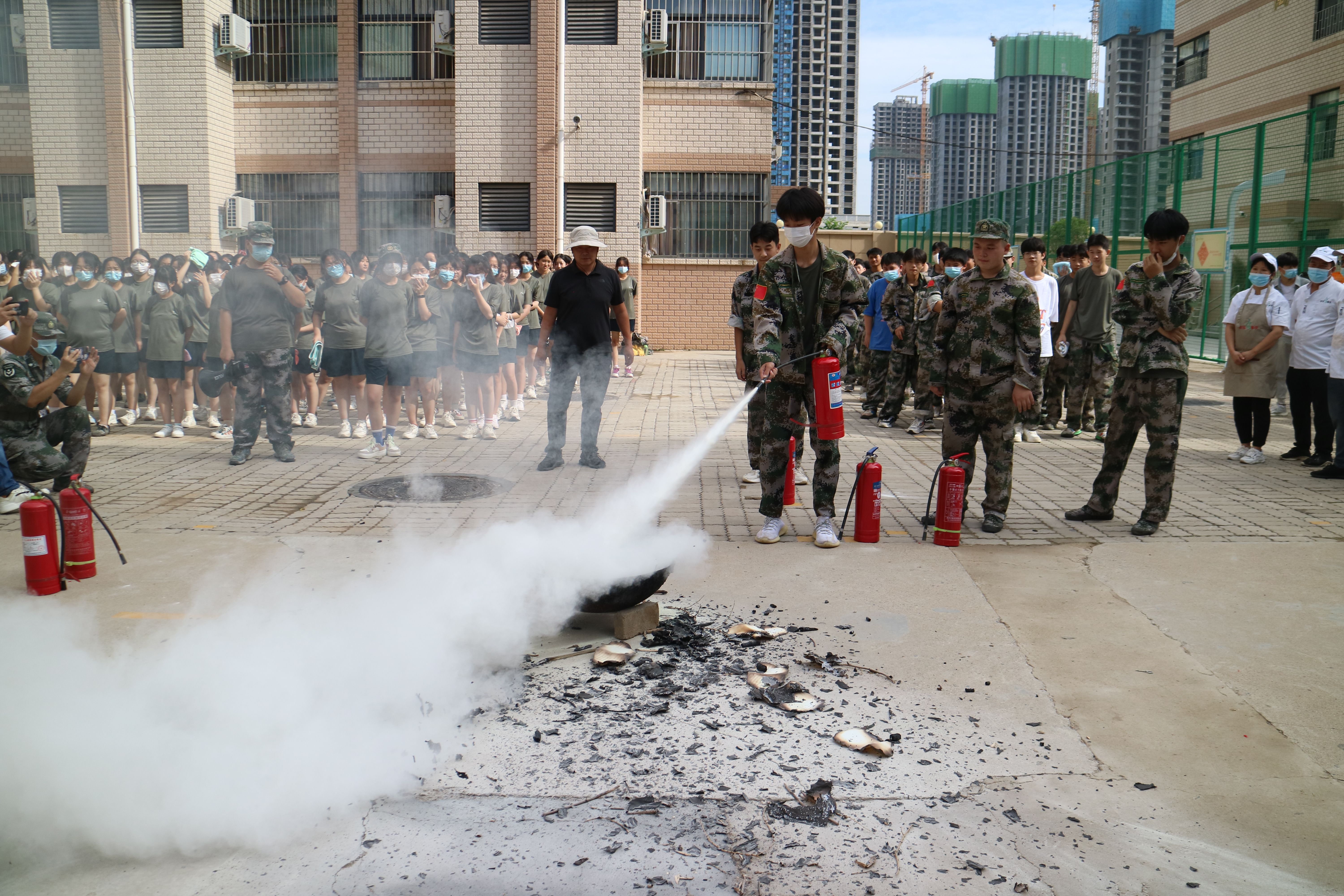 学生练习使用灭火器