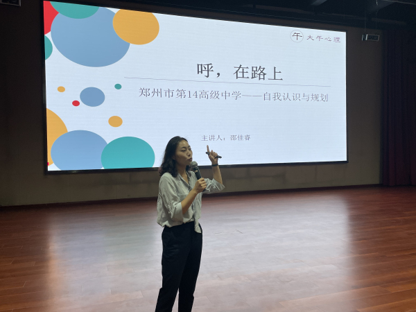 人生是连续发展并不断累积经验和技能的过程,为了培养学生的发展观和全局观,引导学生认识自我,了解自我,合理规划人生,9月13日,郑州市第十四高级中学邀请到郑州市教育局关工委心理专家团成员、国家二级心理咨询师邵佳睿,为高二年级的同学们做了一场主题为《呼,在路上》的心理健康主题讲座。