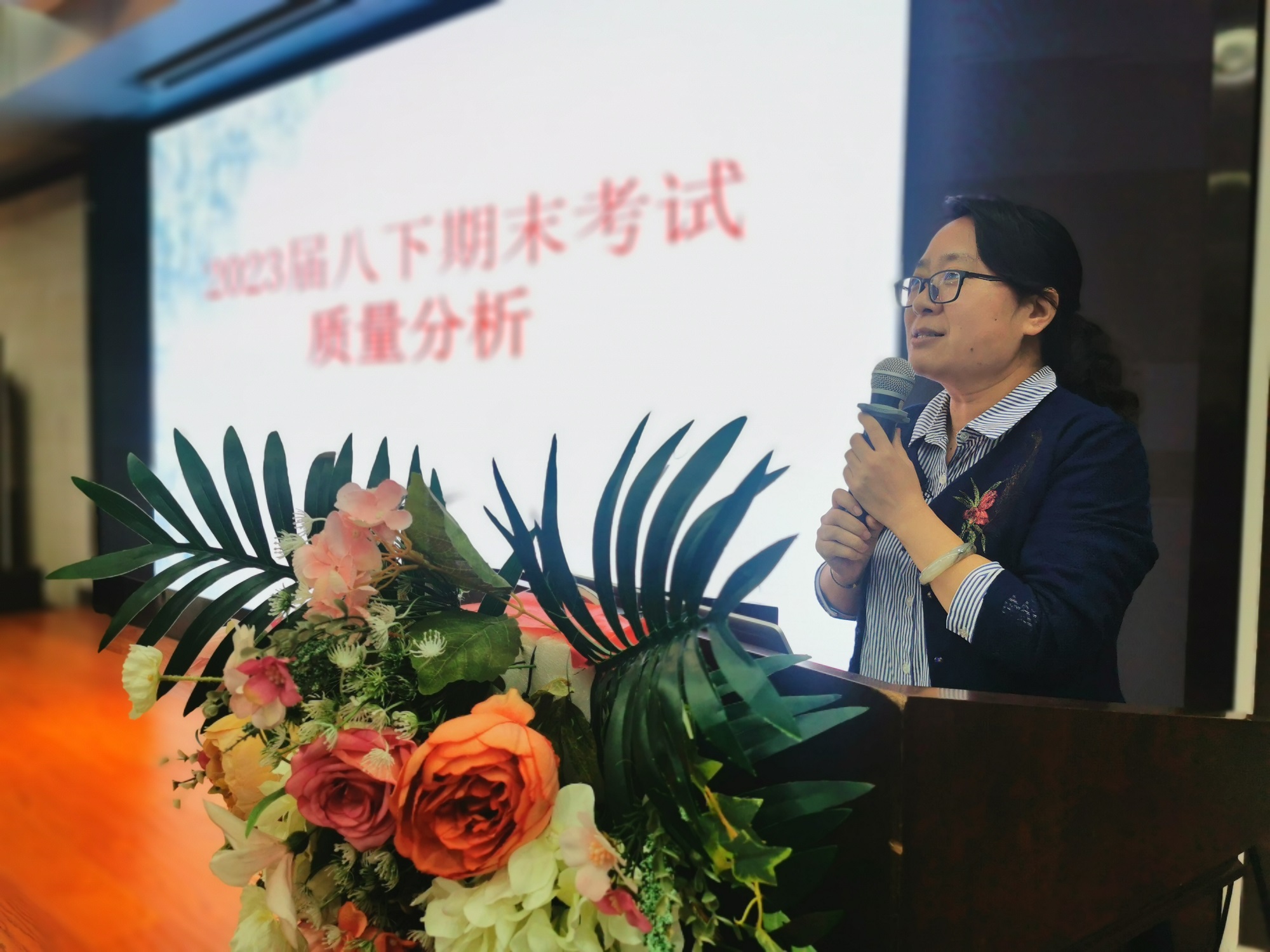 新九年级年级长李平对八年级下期期末考试进行质量分析总结