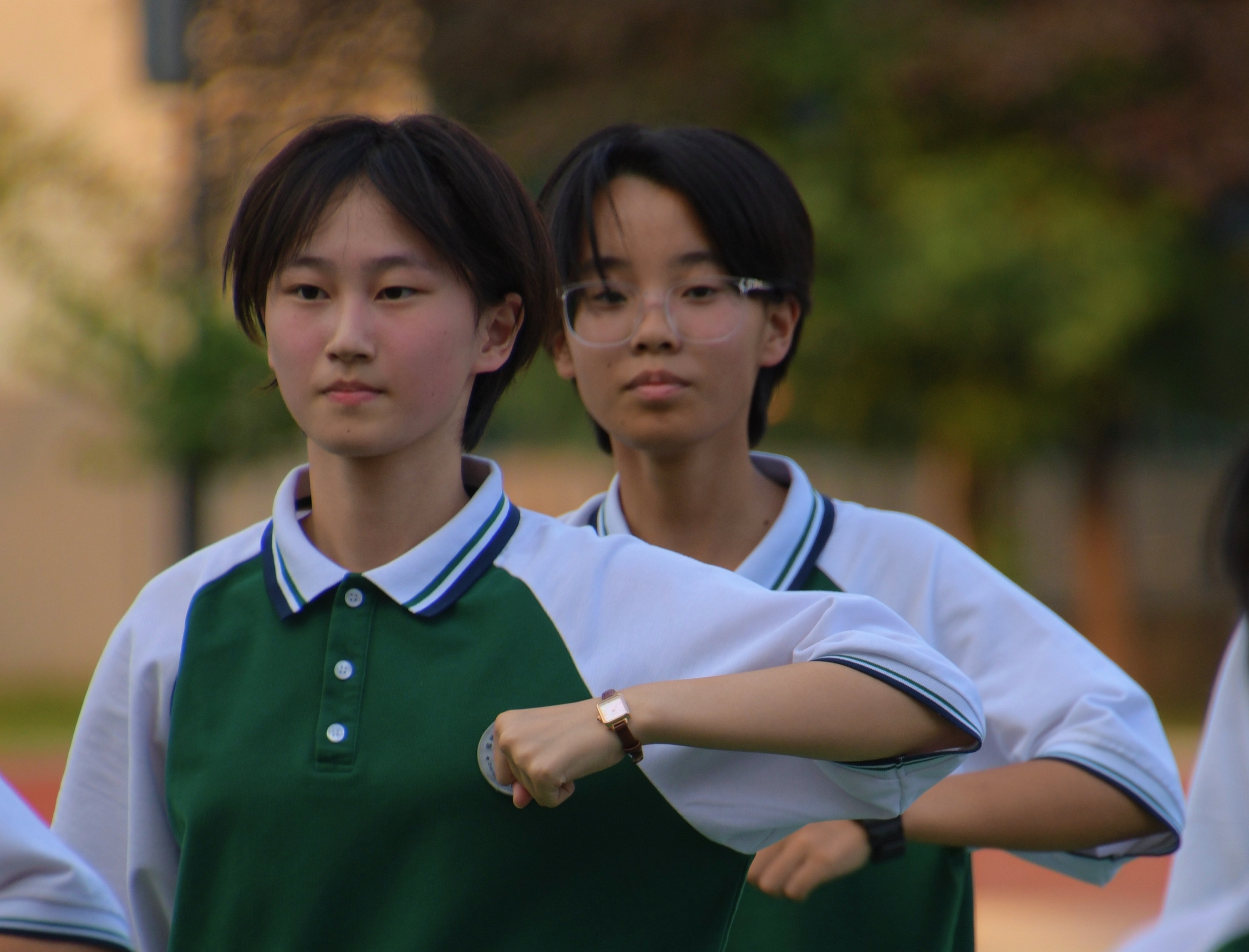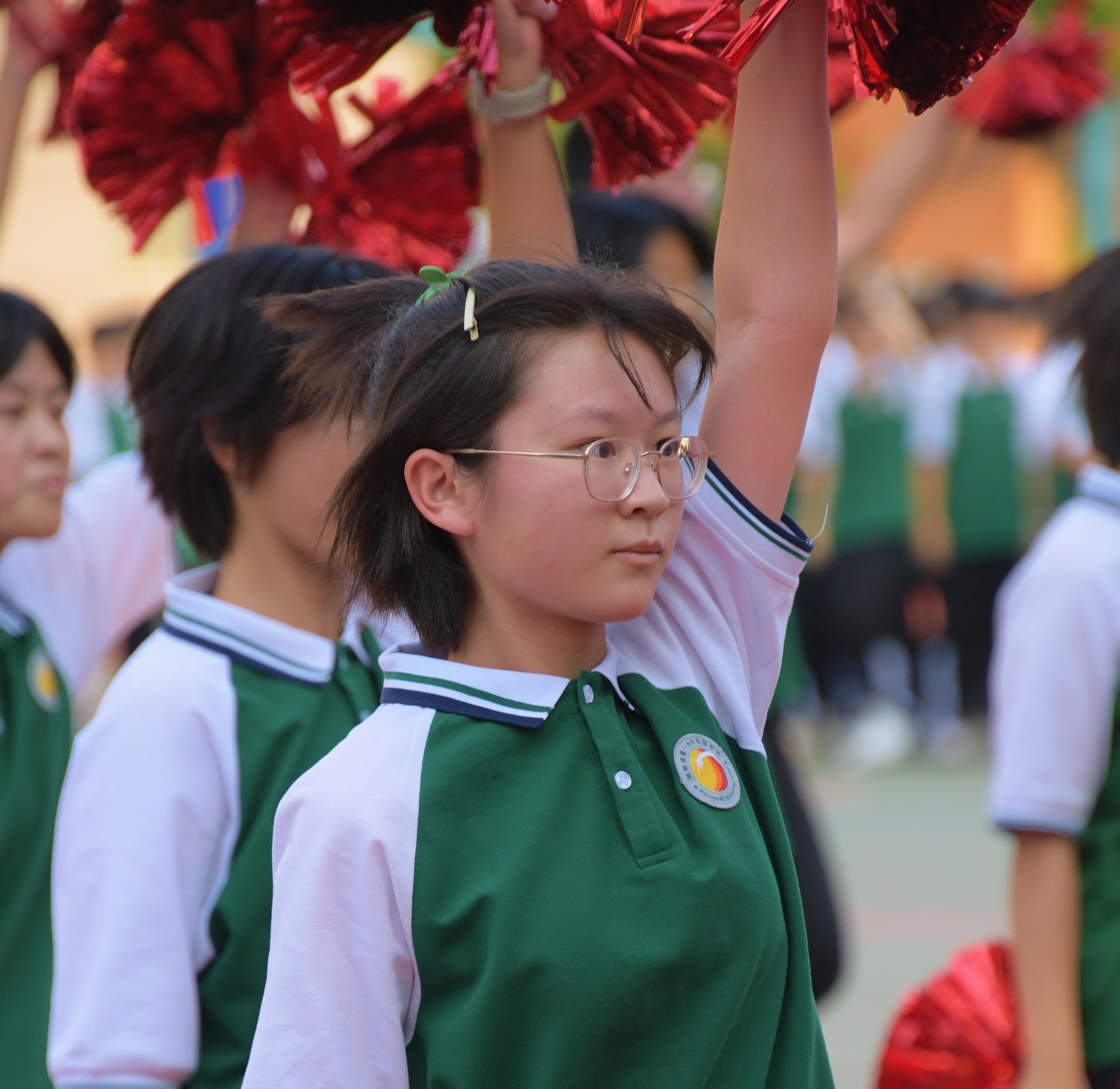 啦啦操节奏欢快,充满动感,同学们笑容灿烂,风采奕奕,动作规范有力,节奏轻快,刚柔并济,伴着律动的节拍,操场上呈现出一片灵动的风景,充分展现出新一代106高中学子的朝气蓬勃与活力。