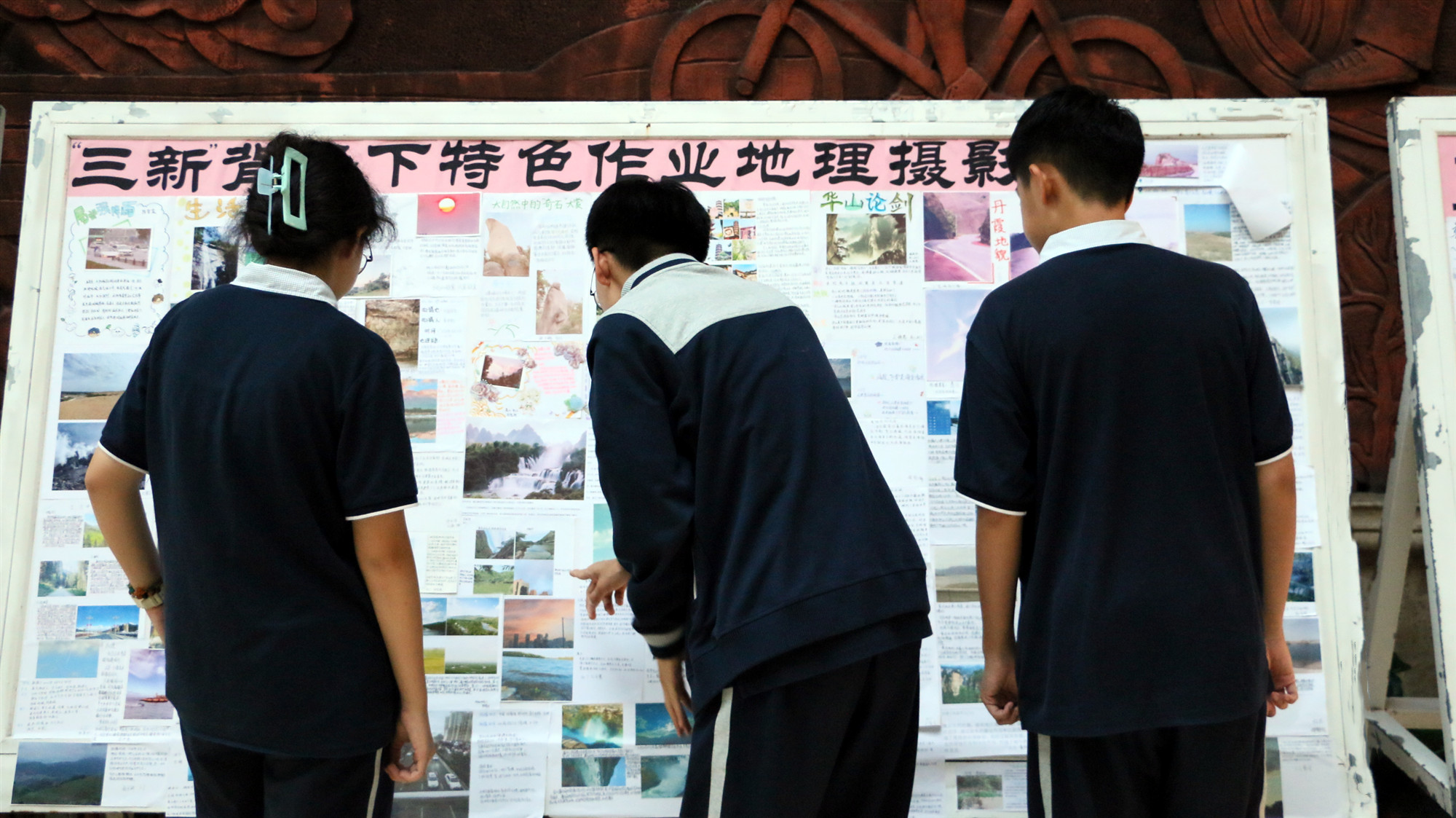 9月14日,郑州市第二高级中学举行“双新”特色作业展,展示高二年级地理和数学学科的优秀暑假作业。