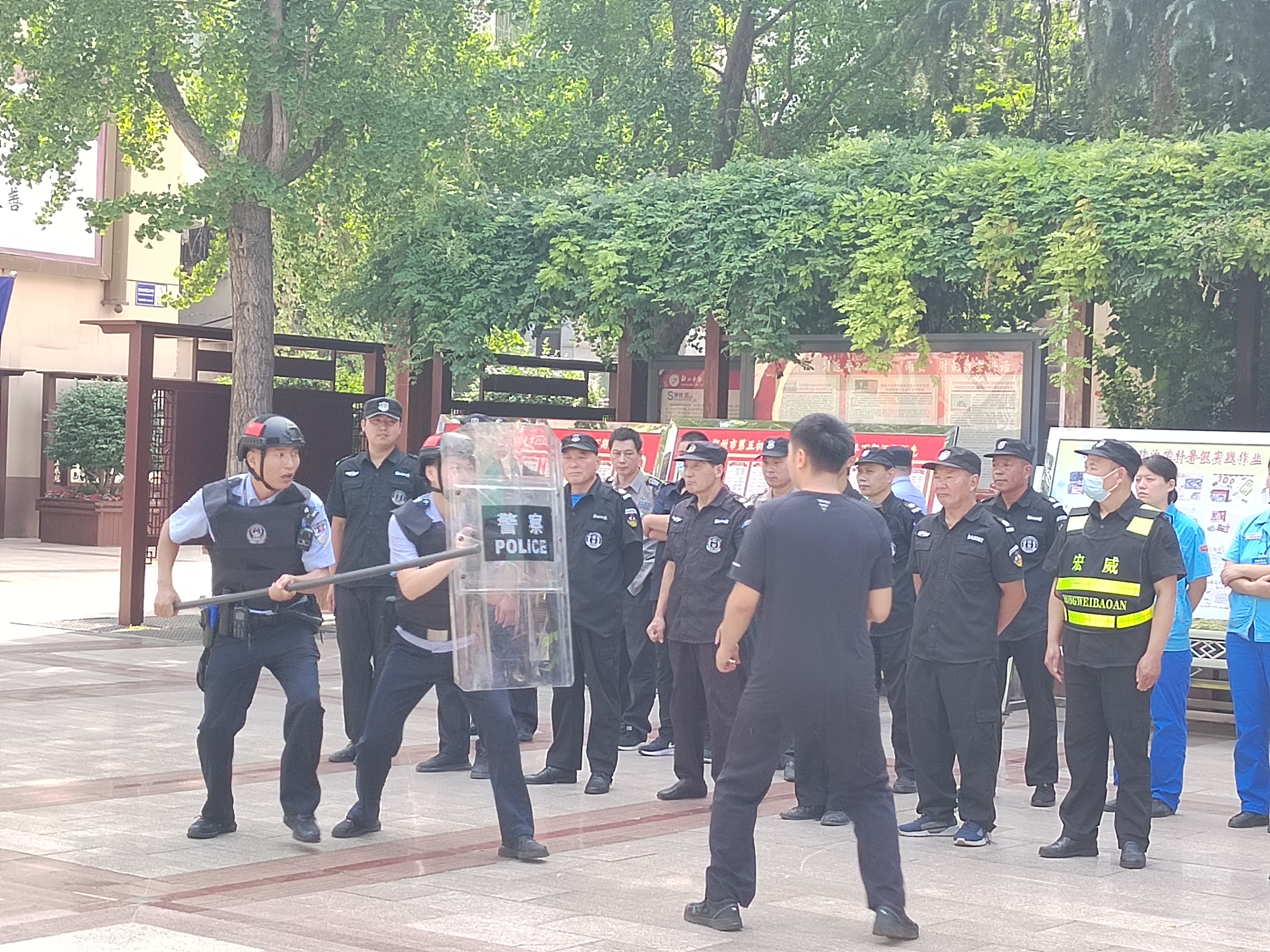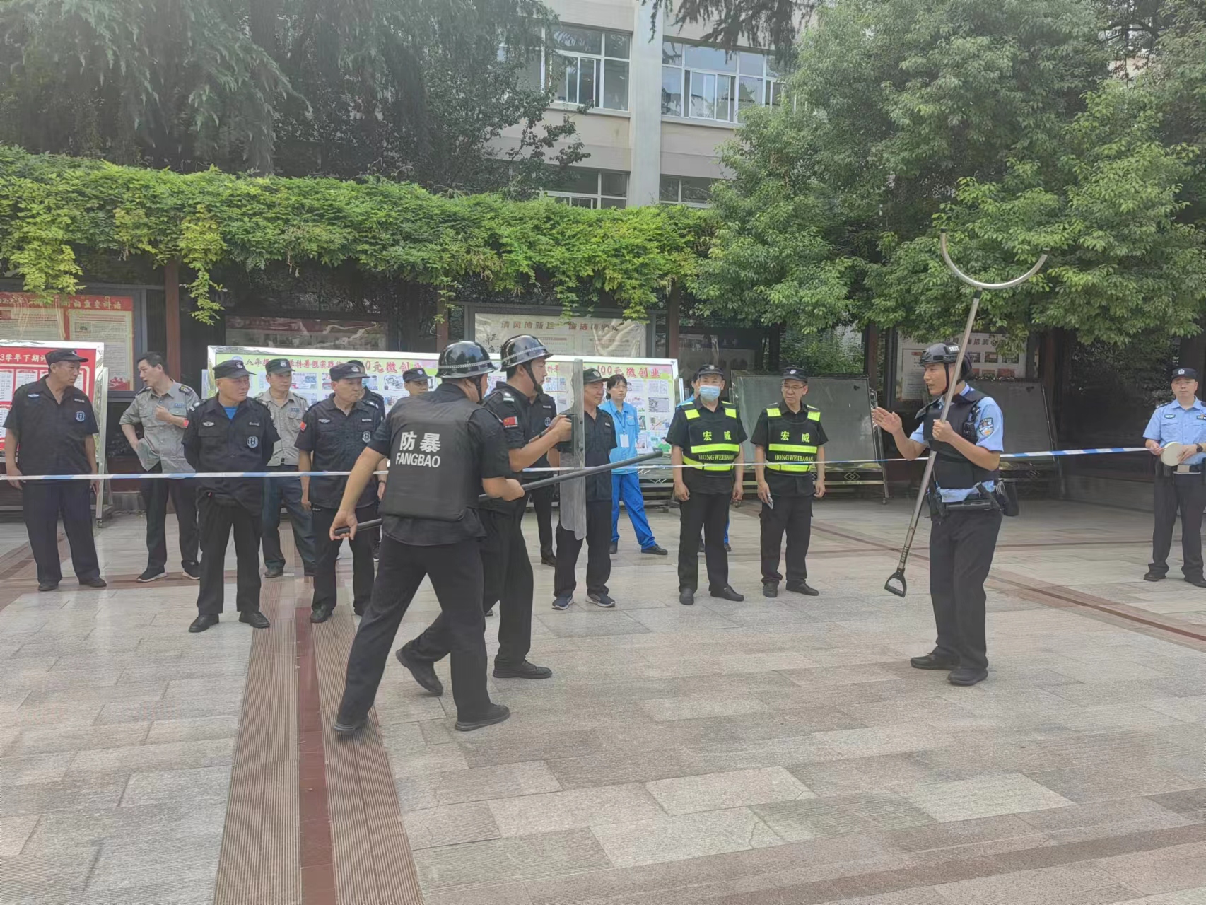 为进一步把学校安全工作落到实处,推进“平安校园”建设,提高学校全体保安人员的安全防范意识和学校处置突发事件的能力,最大限度地减少因突发恐怖事件对师生造成的人员伤害,郑州外国语学校(集团)五中校区(郑州市第五初级中学)于2023年9月18日下午与管城区陇海马路派出所所长许辉、巡特警大队艾永强队长共同开展了校园防恐防暴应急演练。