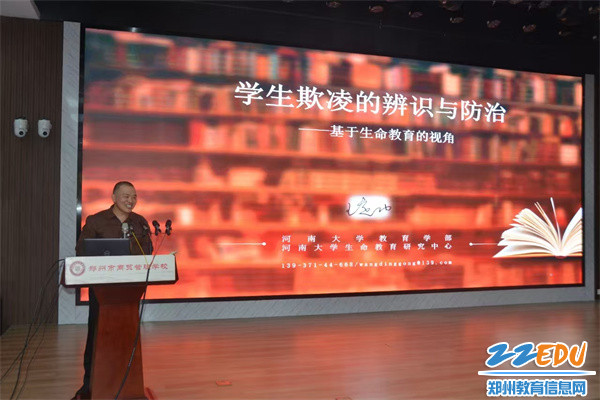 8月31日上午,郑州市商贸管理学校邀请河南大学教育学部教授、博士生导师,河南大学生命教育研究中心主任王定功为学校全体教师作《校园欺凌的识别与应对-基于生命教育的视角》的专题讲座。