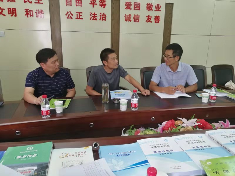副校长许东海(左二)汇报郑州三中道德课堂建设情况