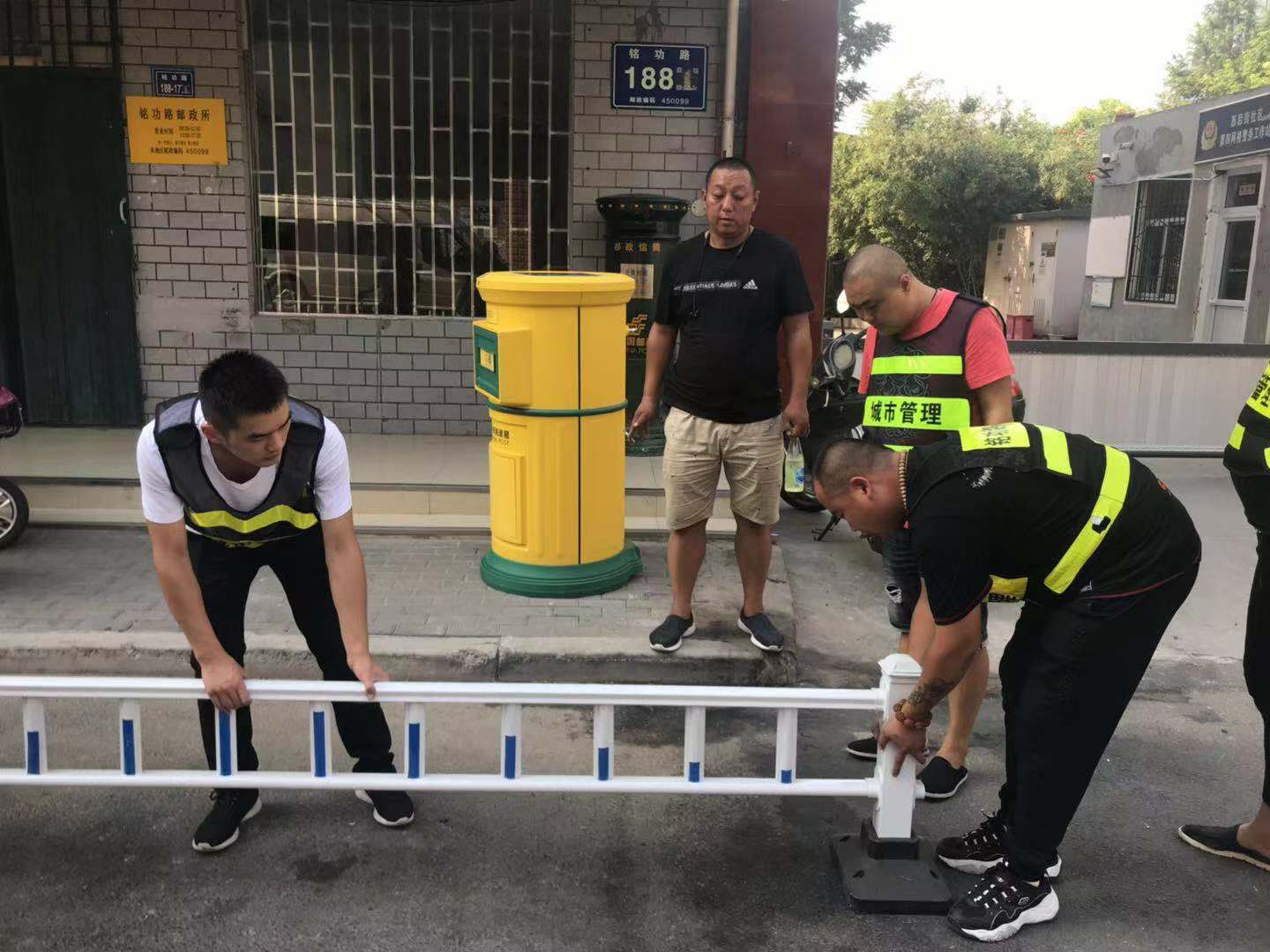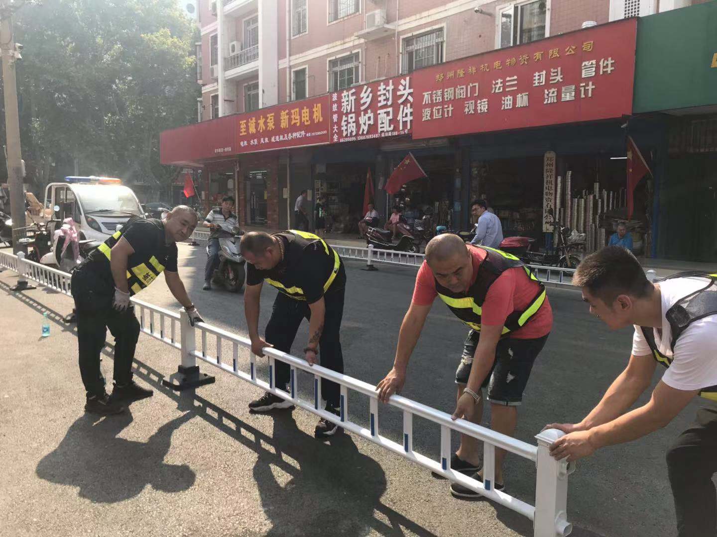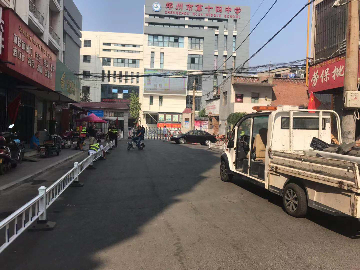 为消除安全隐患,彻底解决存在的车辆乱停乱放的不文明现象,2019年9月5日上午11点,铭功路办事处相关人员对校门口路段进行排摸,加装了道路隔离栏。