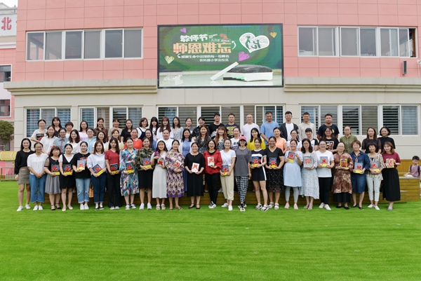 9月10日,农科路小学北校区学校领导班子早早的在校门口给每一位走进校园的教师们送上精心挑选的鲜花绿植并送上节日的祝福,听着这一声声真挚的问候,老师们脸上写满了幸福……