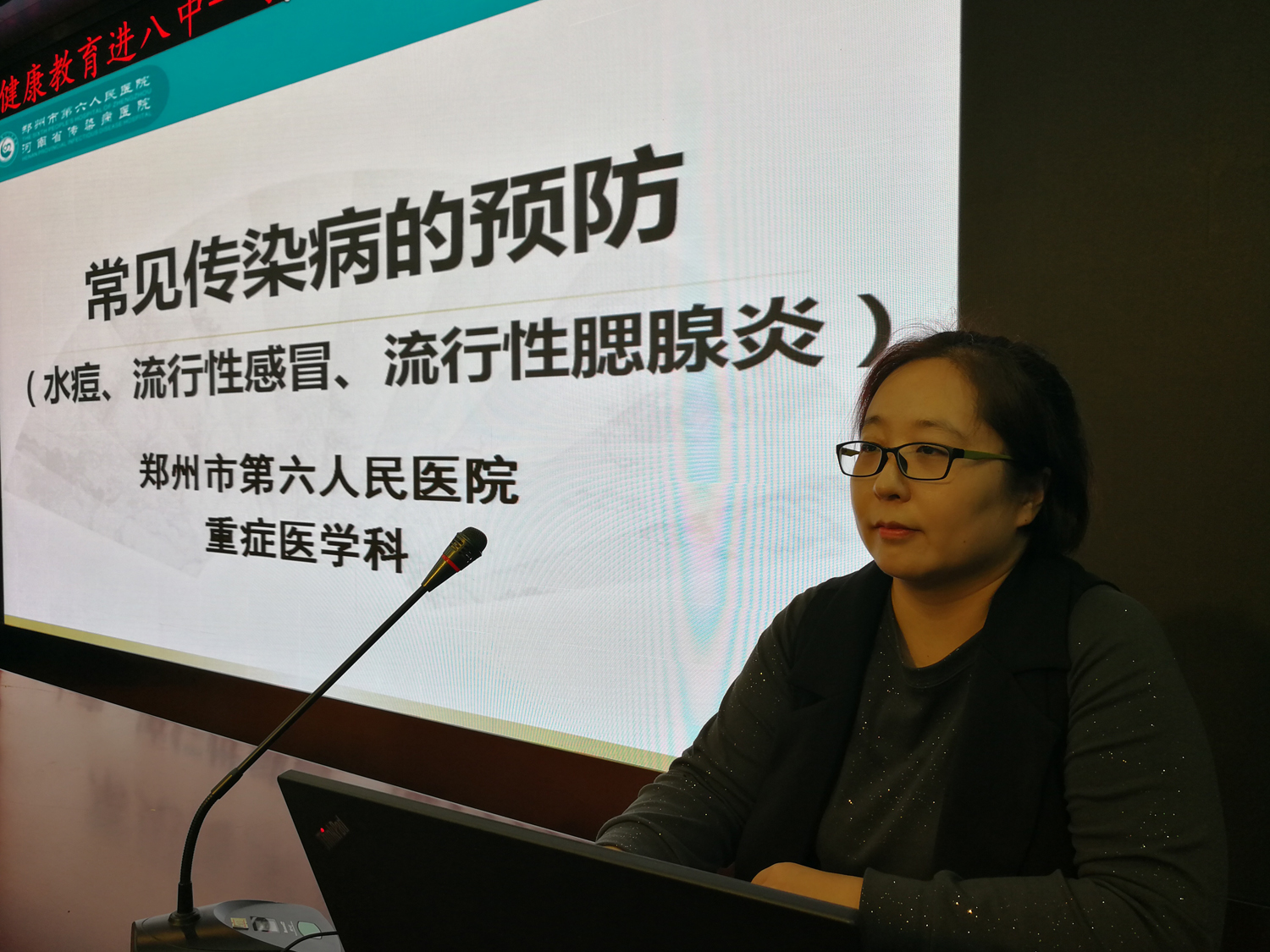 郑州市第六人民医院重症医学科副主任医师刘瑜应邀为学生讲授《常见传染病的预防》