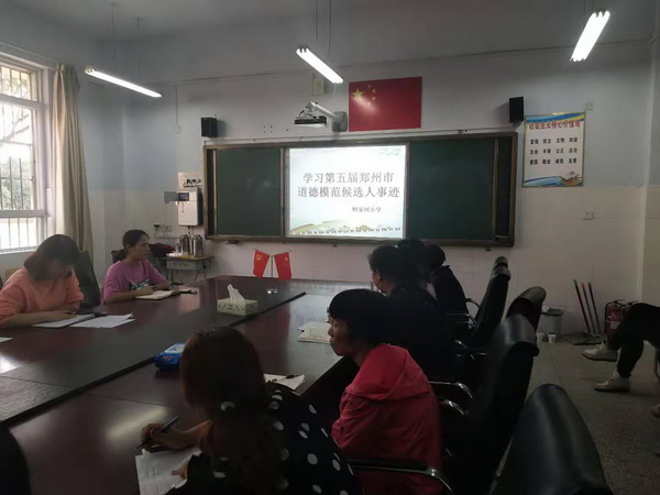 传递平凡的感动,彰显榜样的力量。9月23日下午,惠济区师家河小学全体教师一起学习了郑州市道德模范候选人事迹,聆听道德模范的感人事迹,接受道德模范高贵品质的精神洗礼。会议由副校长司晓凤主持。