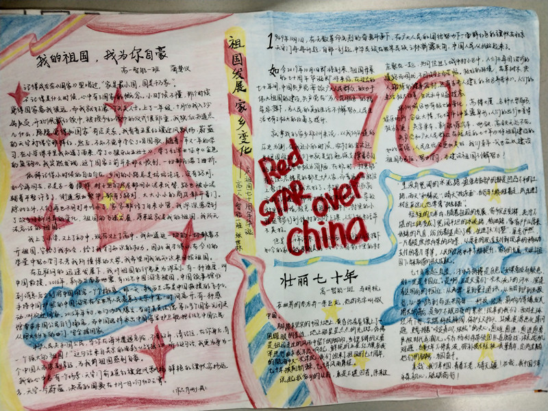 为增强学生的爱国热情,激发学生学习语文的兴趣,提高学生的审美能力,锻炼学生的写作水平,郑州二中近期开展了“庆新中国成立七十周年”手抄报比赛,并在9月23日上午进行了评选。