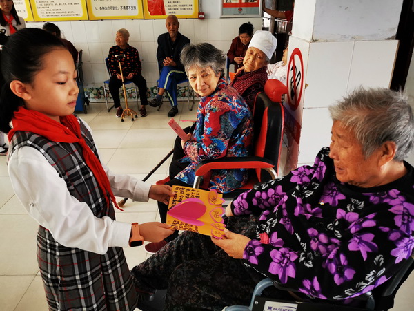 惠济区南阳小学少先队员到敬老院为爷爷奶奶送上贺卡
