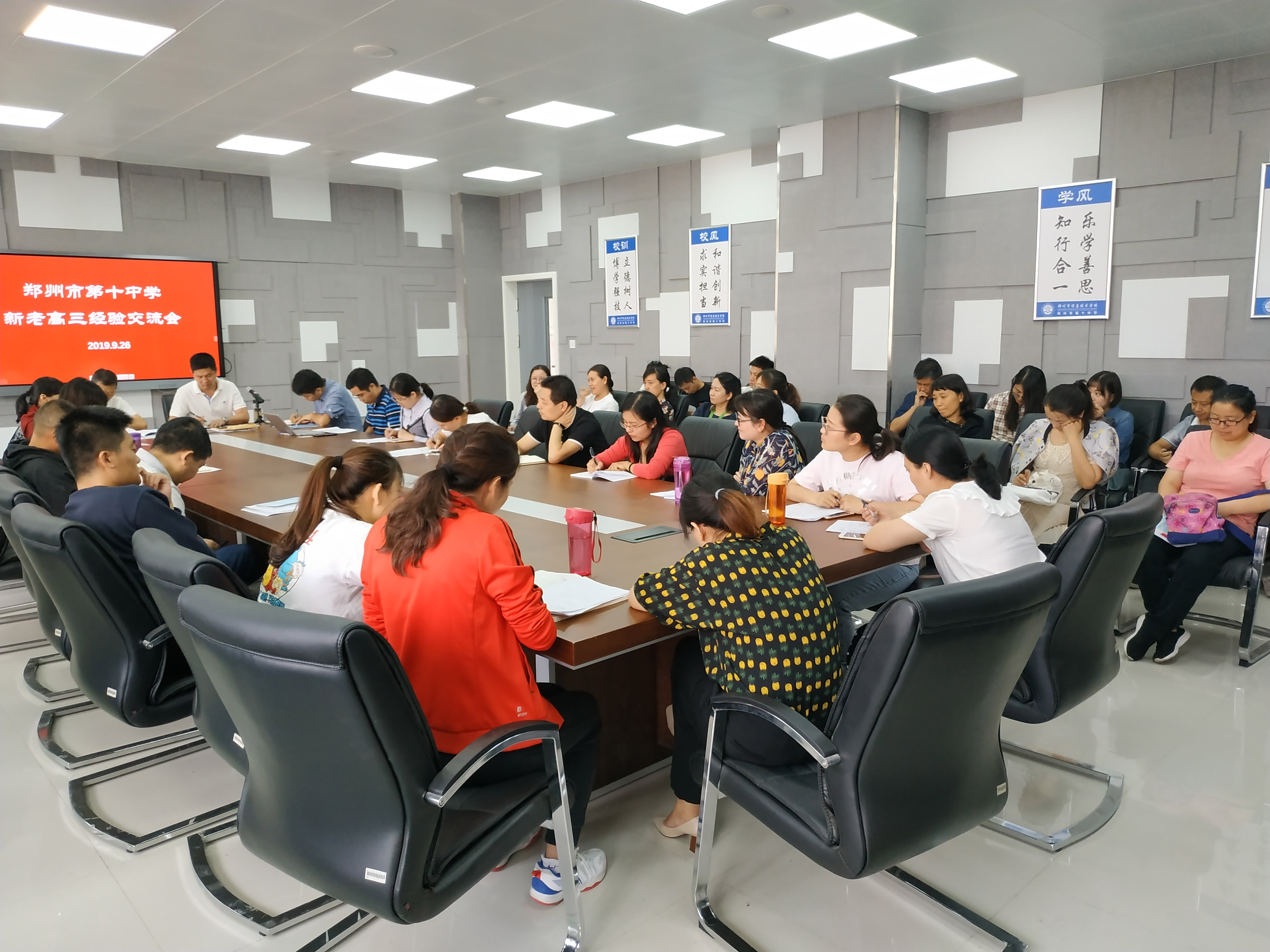 为进一步做好2020年高考备考工作,传承备考经验,共享备考资源,9月26日下午,郑州市第十中学召开了新老高三经验交流会。副校长张继波、教务处主任高保军、教务处副主任朱荣涛出席会议,全体新老高三年级教师参加会议。教务处副主任李鹏主持会议。